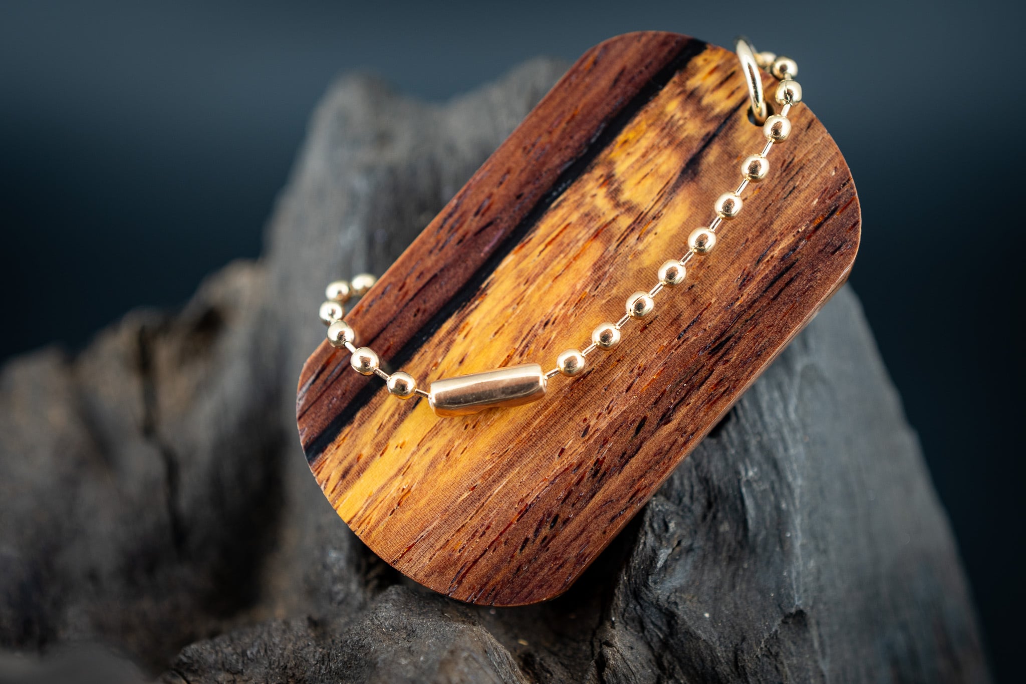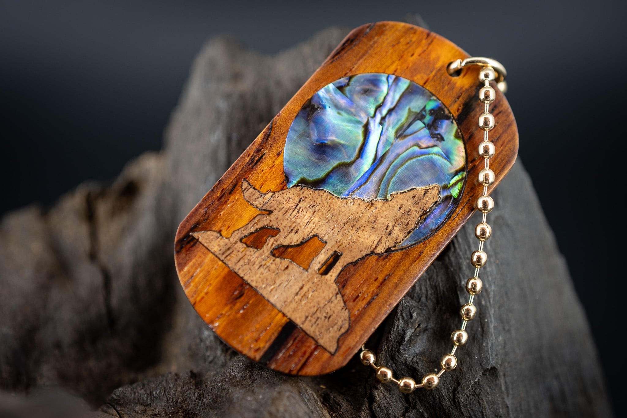 【 エスニックなローズウッド 】ココボロ ドッグタグ 象嵌 月と狼