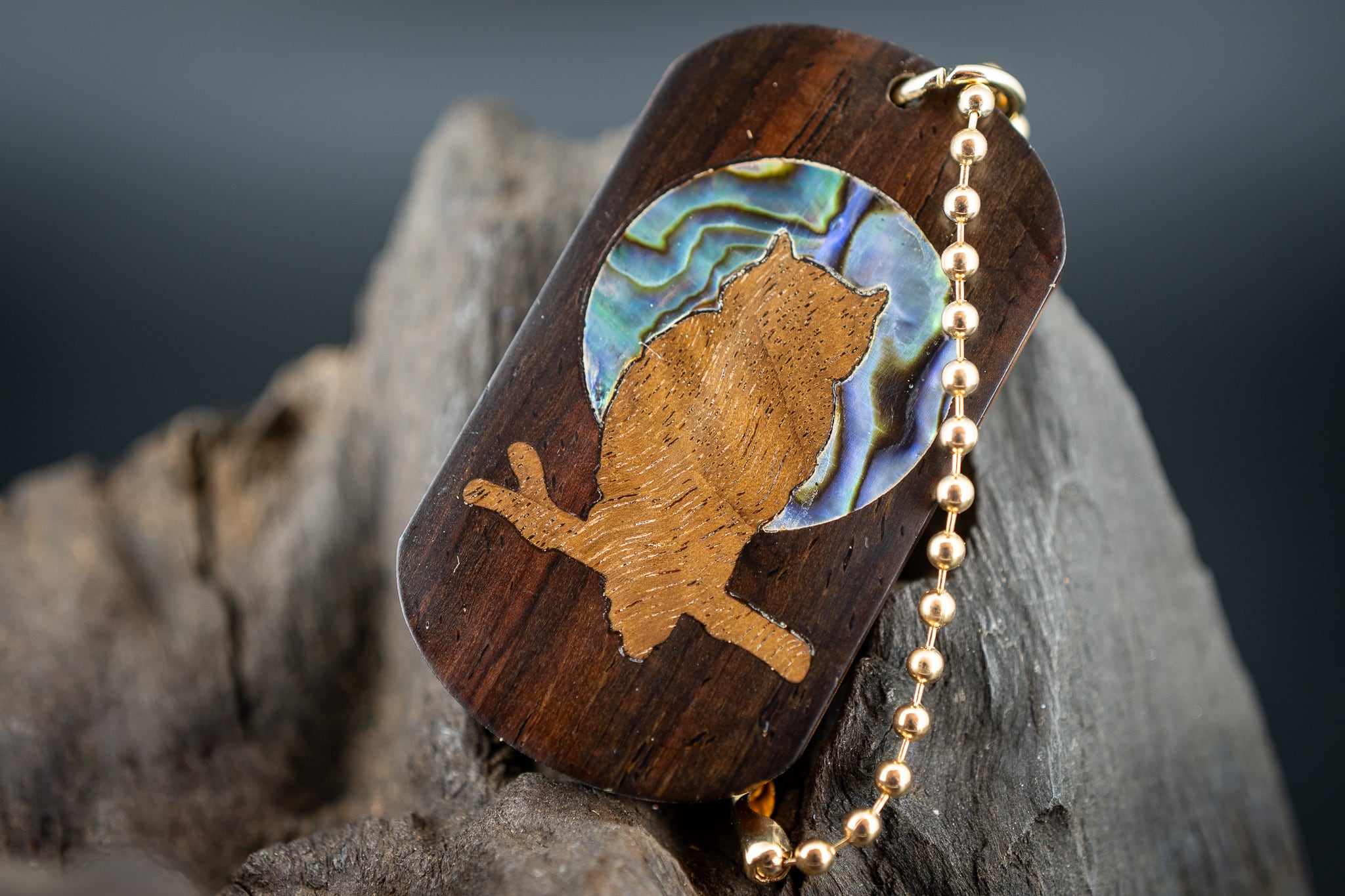【 エスニックなローズウッド 】 ココボロ ドッグタグ 象嵌 夜とミミズク