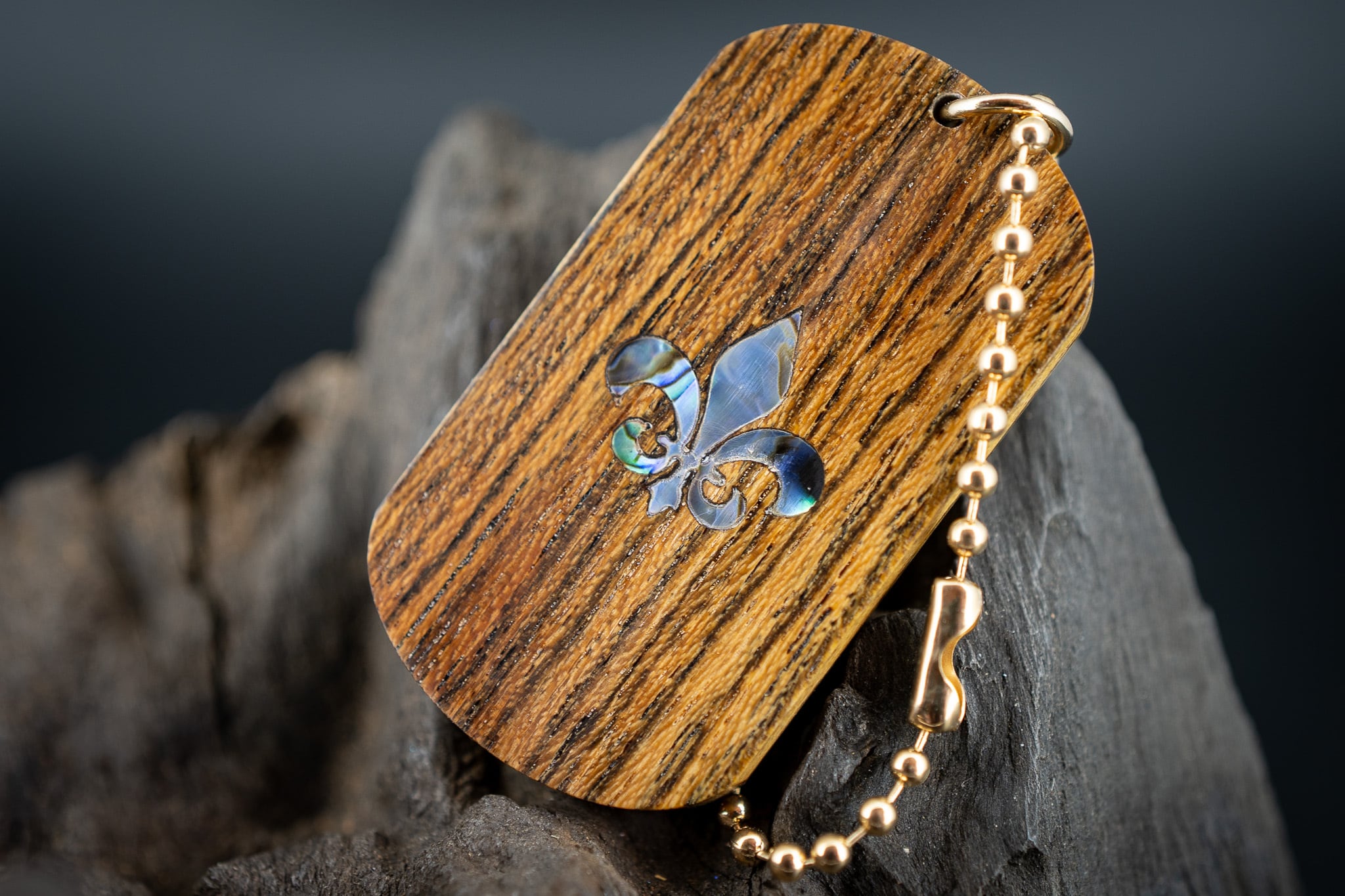 【黄王檀】リオグランデパリサンダー ドッグタグ 象嵌 フルールドリス