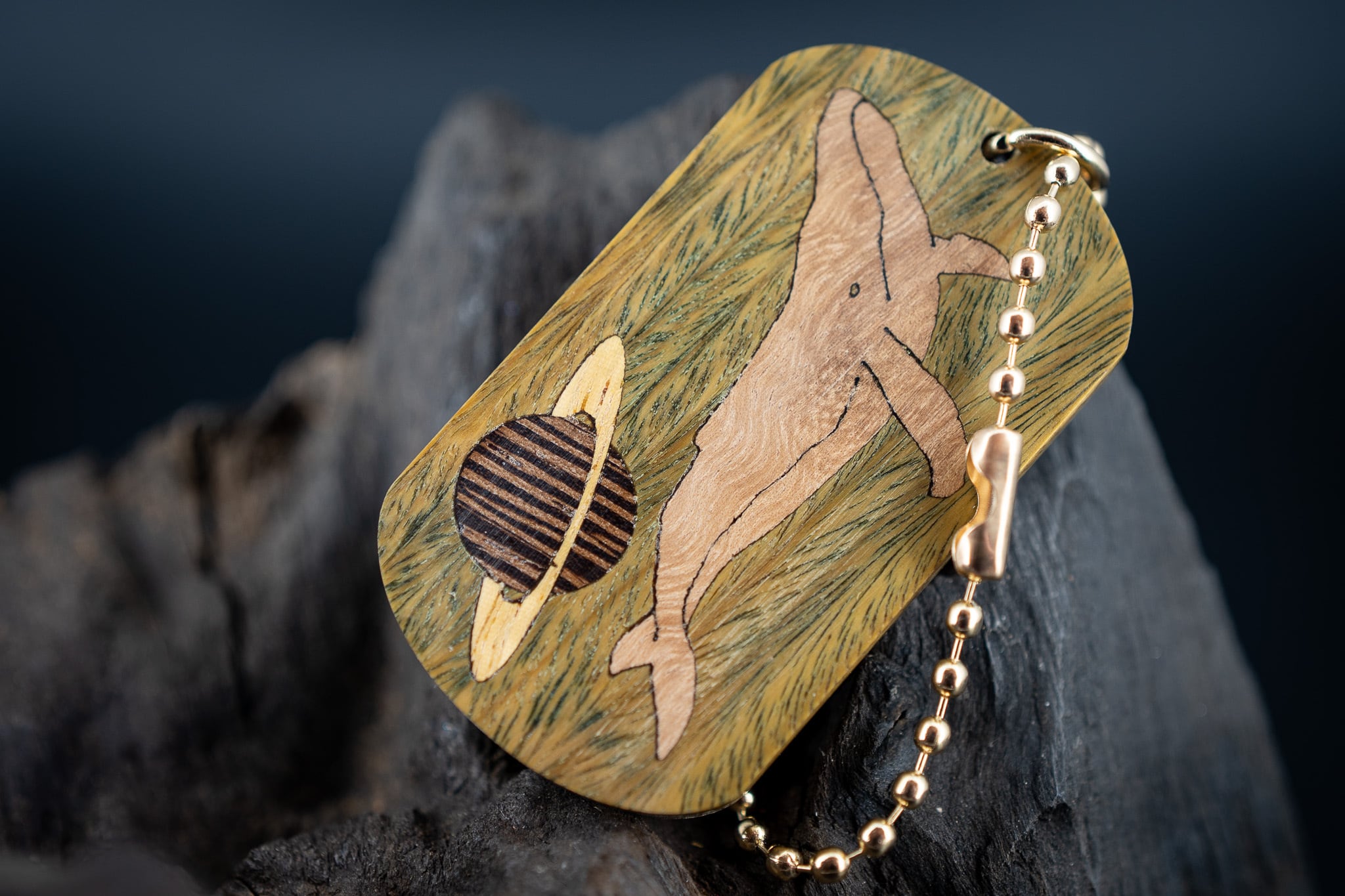 【翡翠の木】パロサント ドッグタグ 象嵌 勇魚と惑星