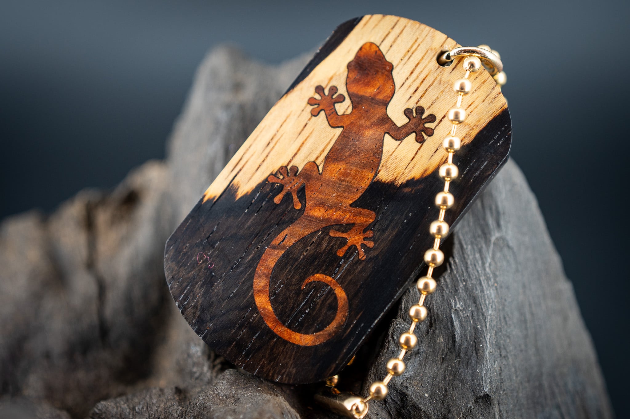 【音楽業界屈指の銘木】 ハカランダ ツートン ドッグタグ 象嵌 木登りトカゲ