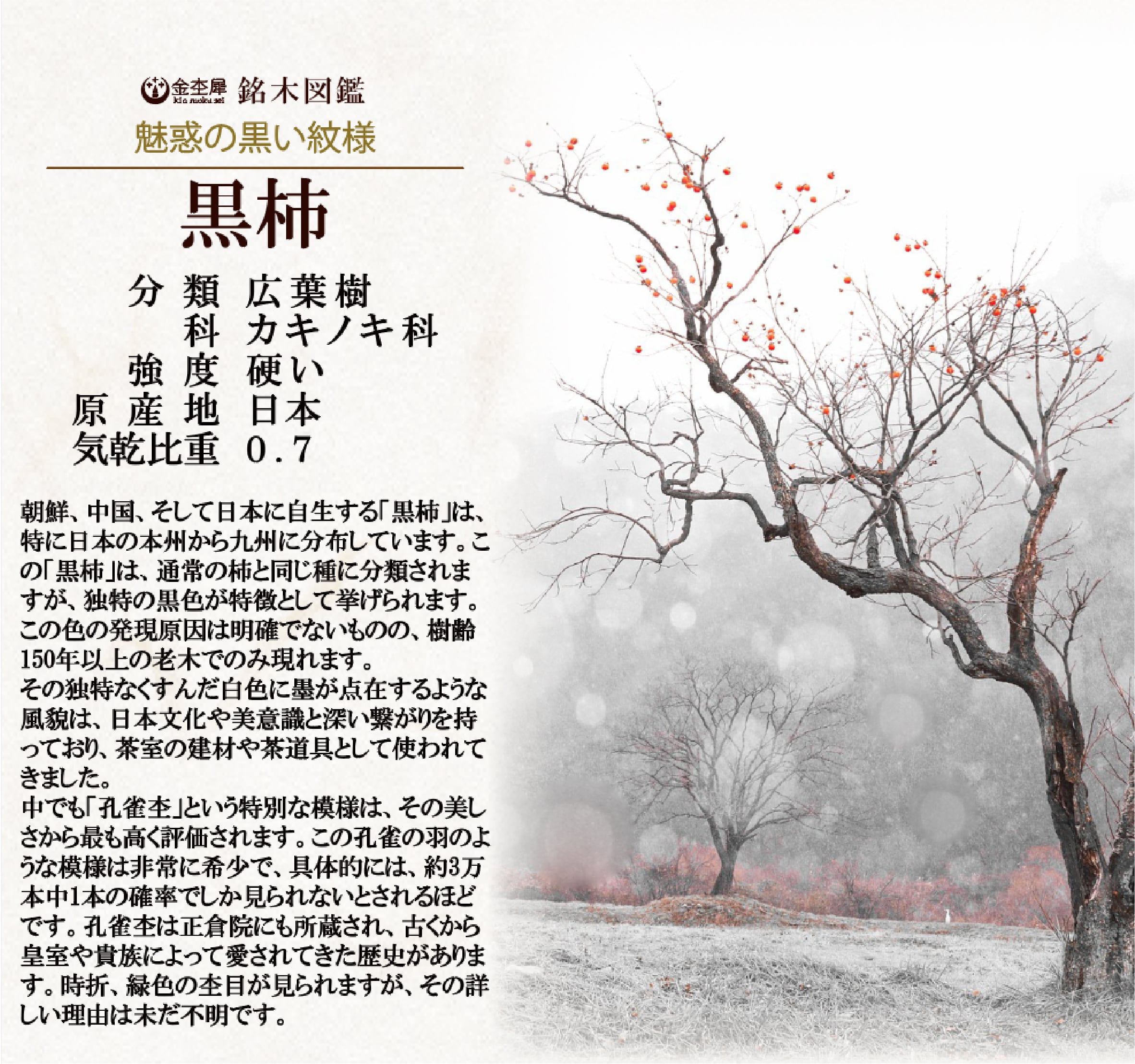 中でも大きな羽の様な模様が入っている黒柿孔雀杢は、時代と共に価値は高まり、近年特に材が手に入らなくなりました。