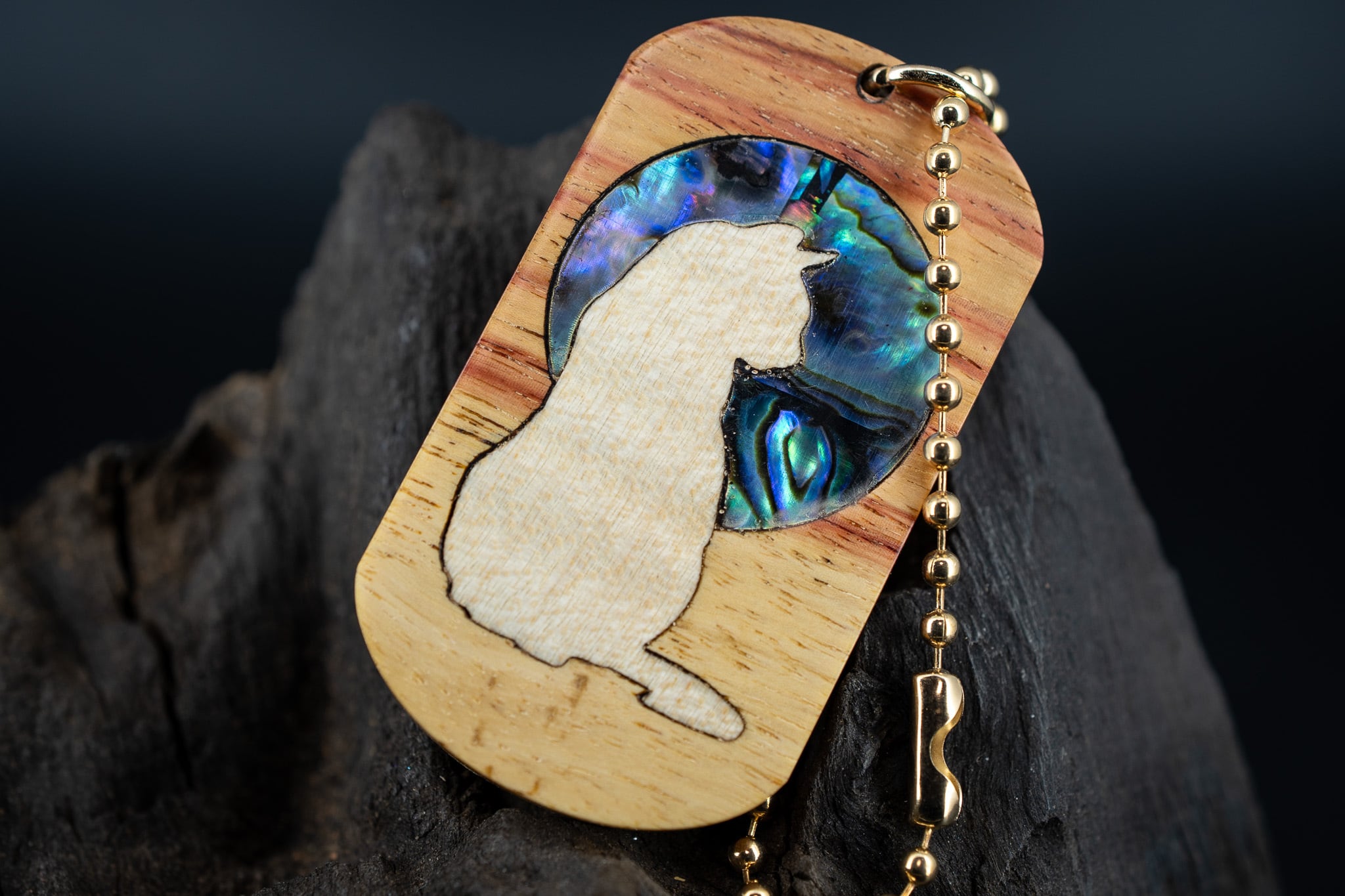 【 木材の女王】 チューリップウッド ドッグタグ 象嵌 横を向く上品な猫
