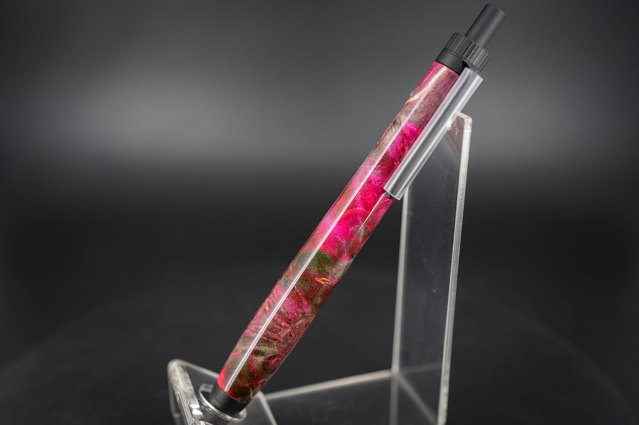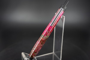こちらは、ハードメープル瘤に赤や緑色の樹脂で染色した一本。
