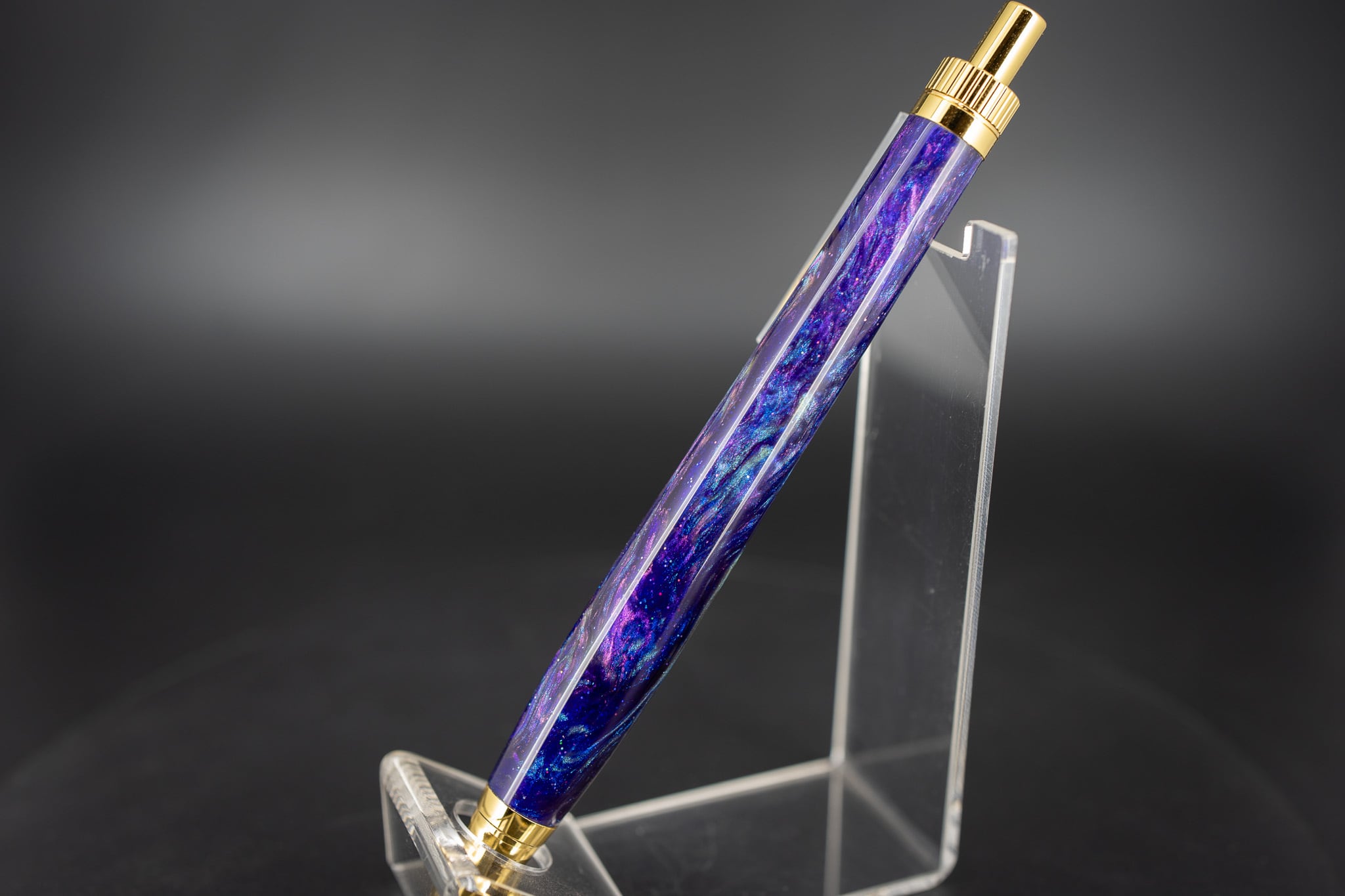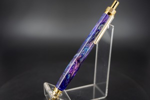 黒をベースに紫やシルバーが複雑にマーブルを描く、煌めく銀河のような一本。