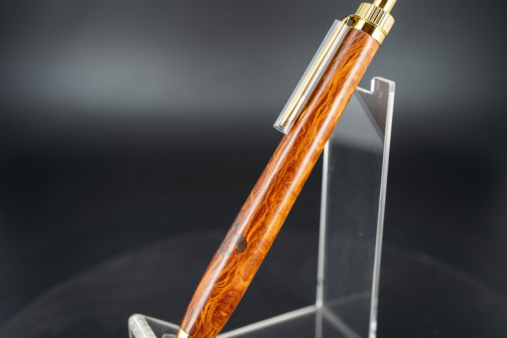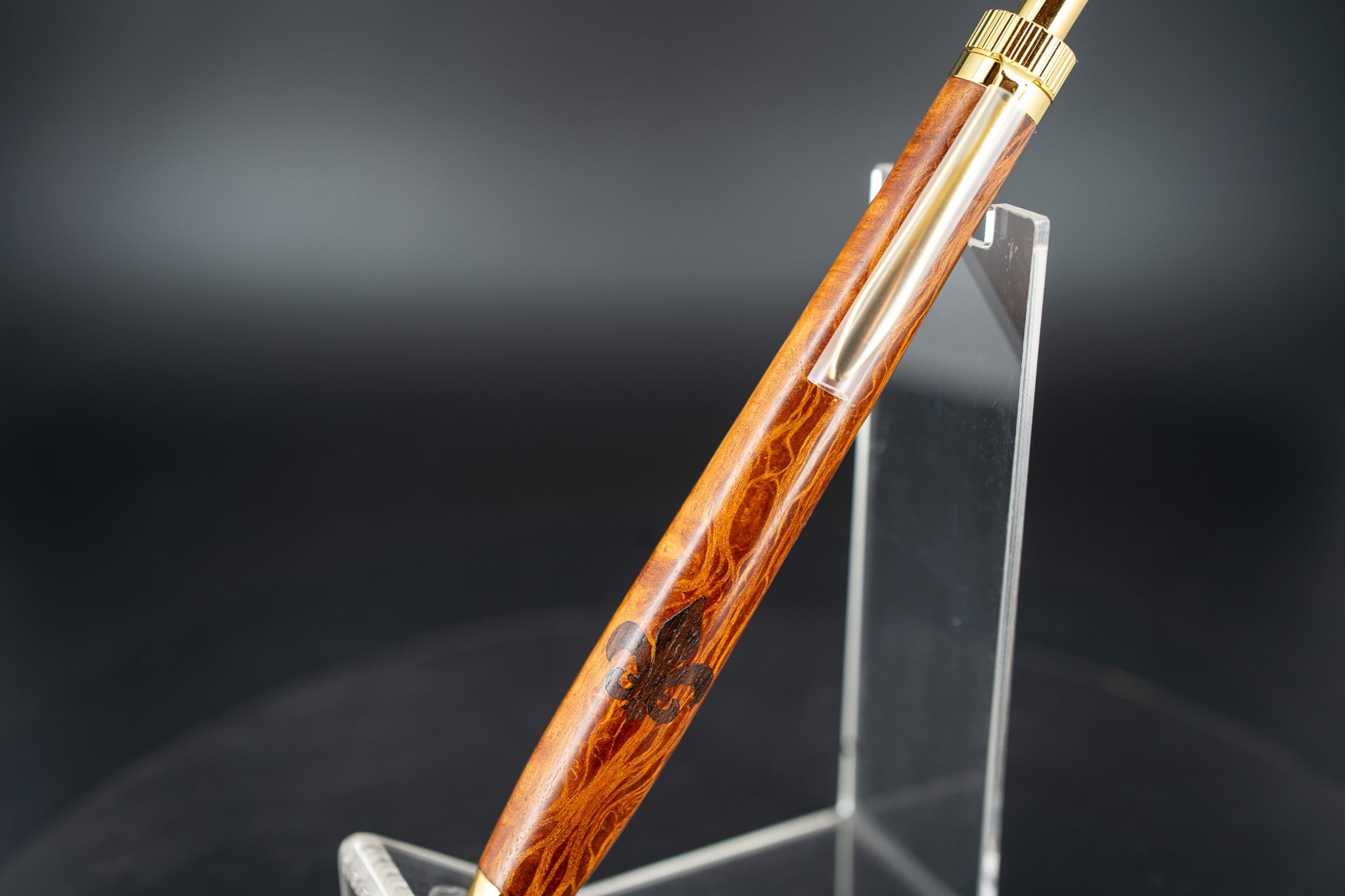 王家の紋章として知られているアイリスの花のモチーフを、インドローズウッドを嵌め込み上品に仕立てました。