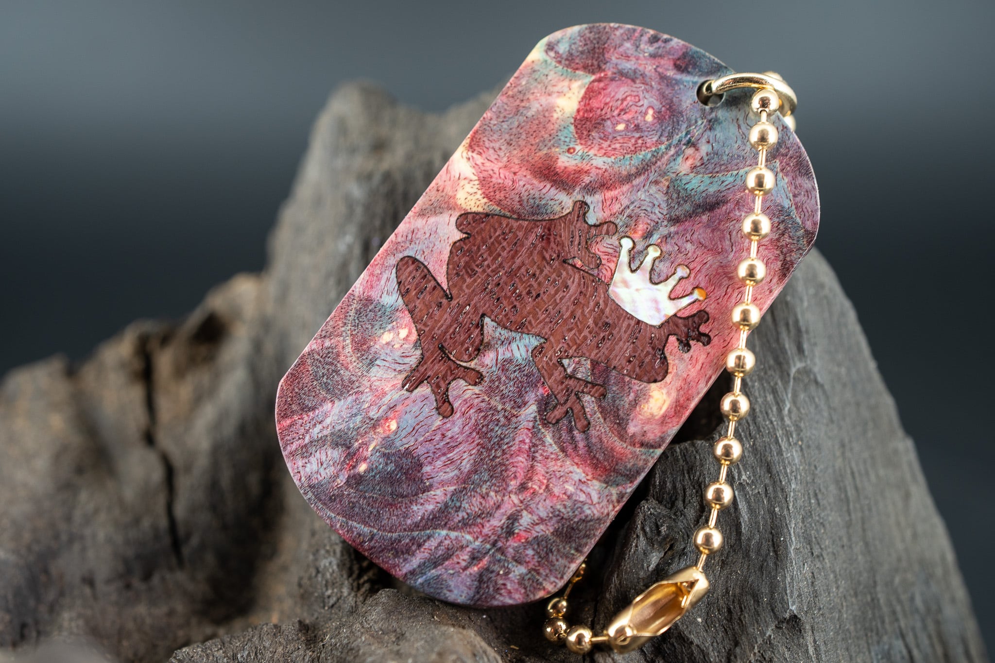 【カナダの象徴】ハードメープル瘤杢 スタビライズウッド ドッグタグ 木象嵌 カエルの王様