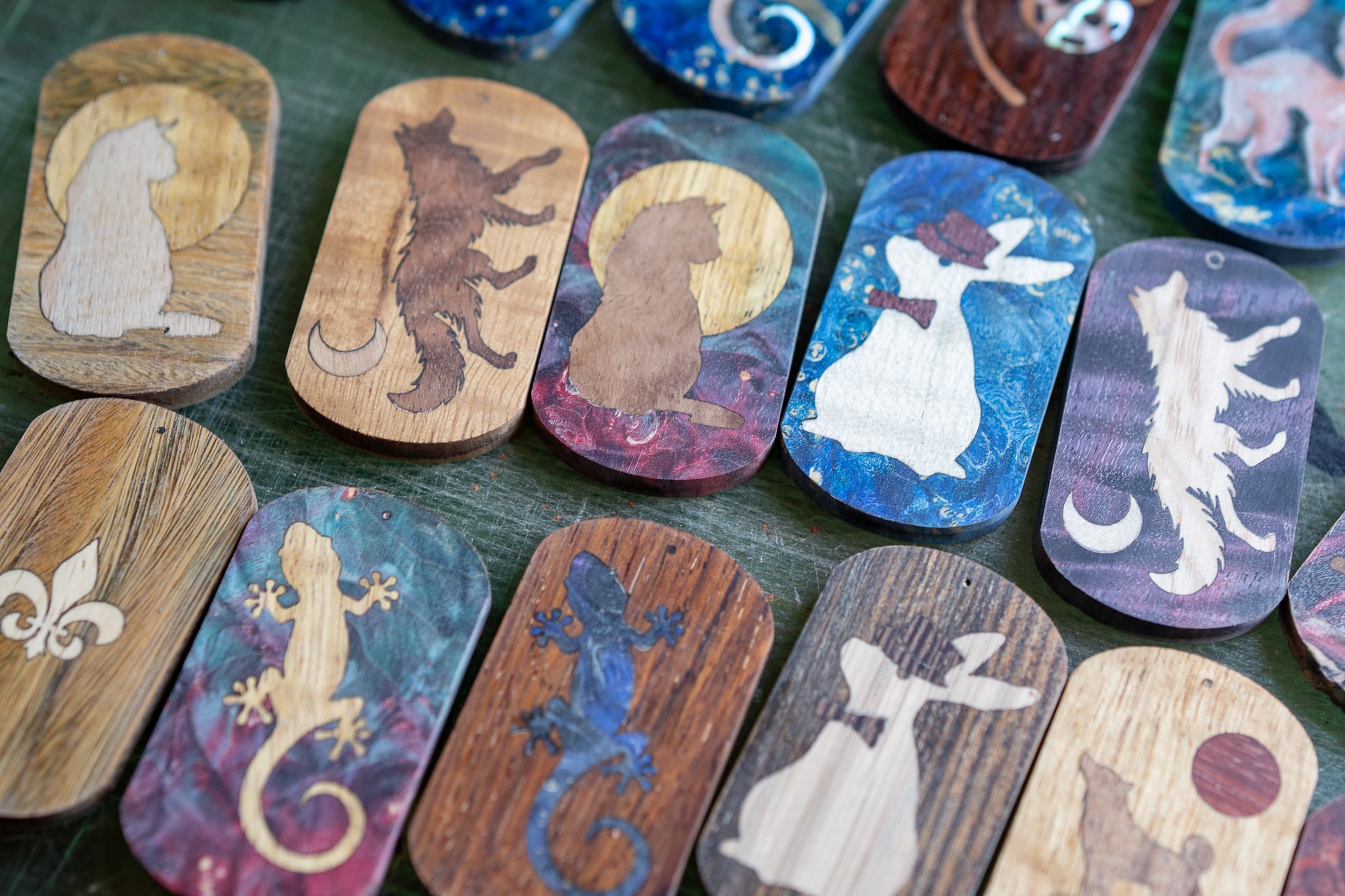【カナダの象徴】ハードメープル瘤 スタビライズウッド ドッグタグ 木象嵌 十五夜きつね