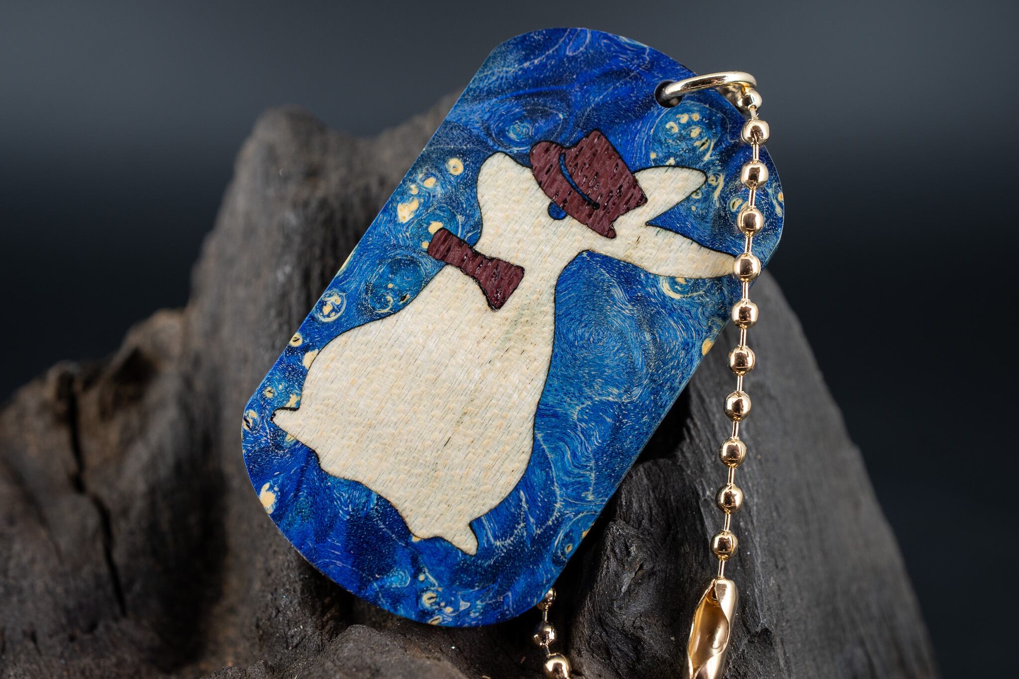 【カナダの象徴】ハードメープル 瘤杢 スタビライズウッド ドッグタグ 象嵌 三月ウサギ