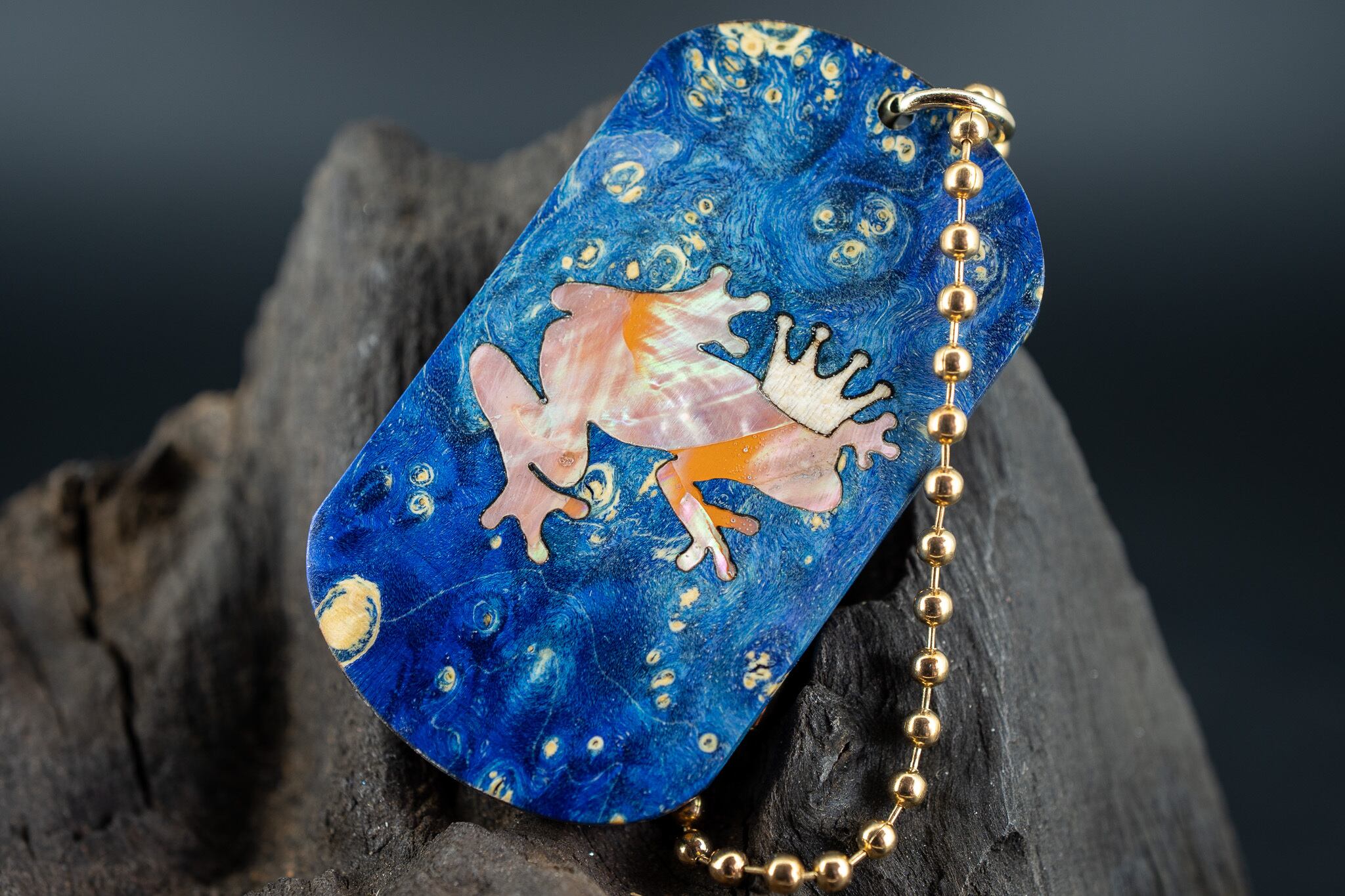 【カナダの象徴】ハードメープル瘤杢 スタビライズウッド ドッグタグ 木象嵌 カエルの王様