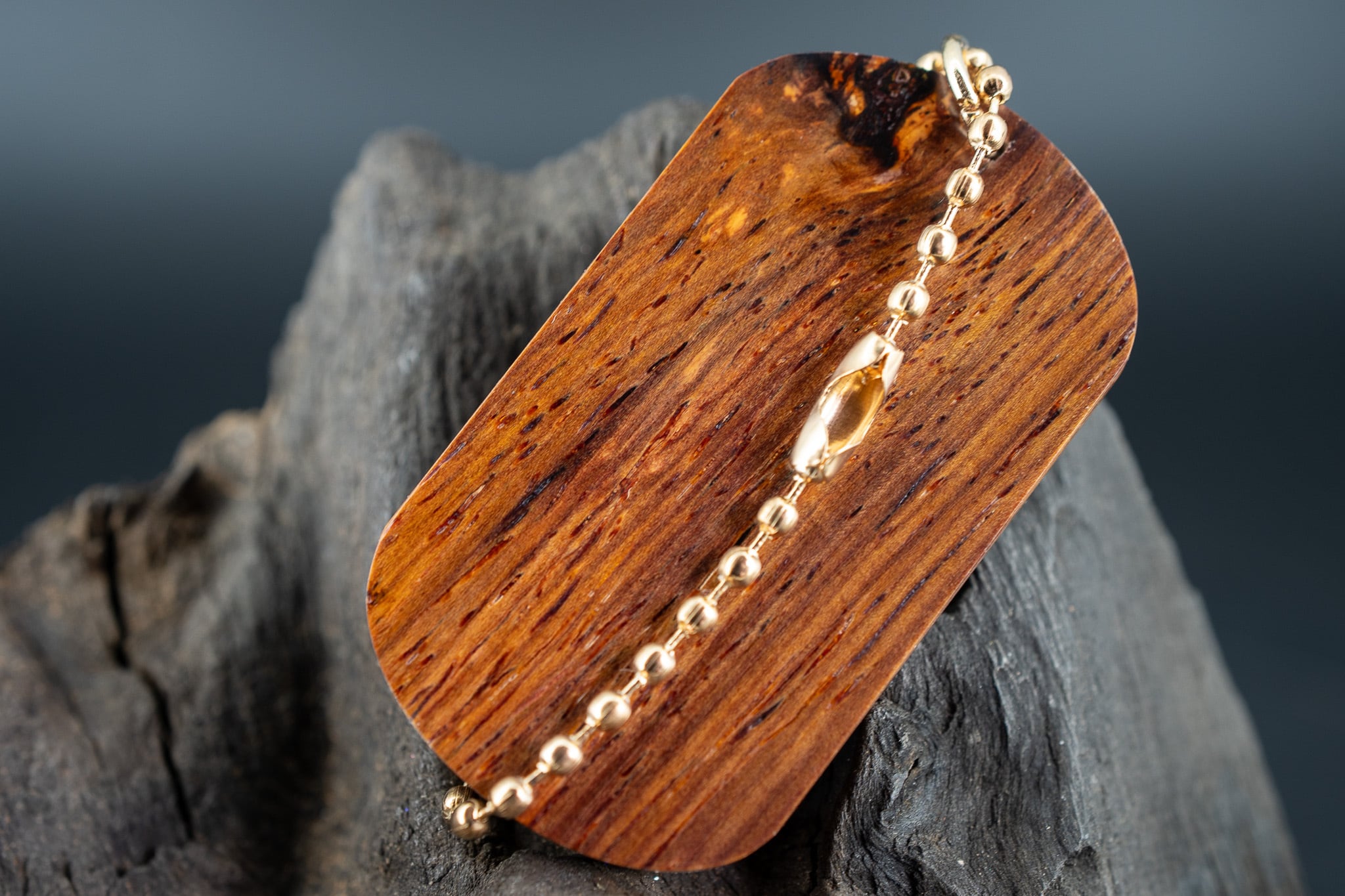 【 エスニックなローズウッド 】ココボロ ドッグタグ 木象嵌 横を向く上品な猫