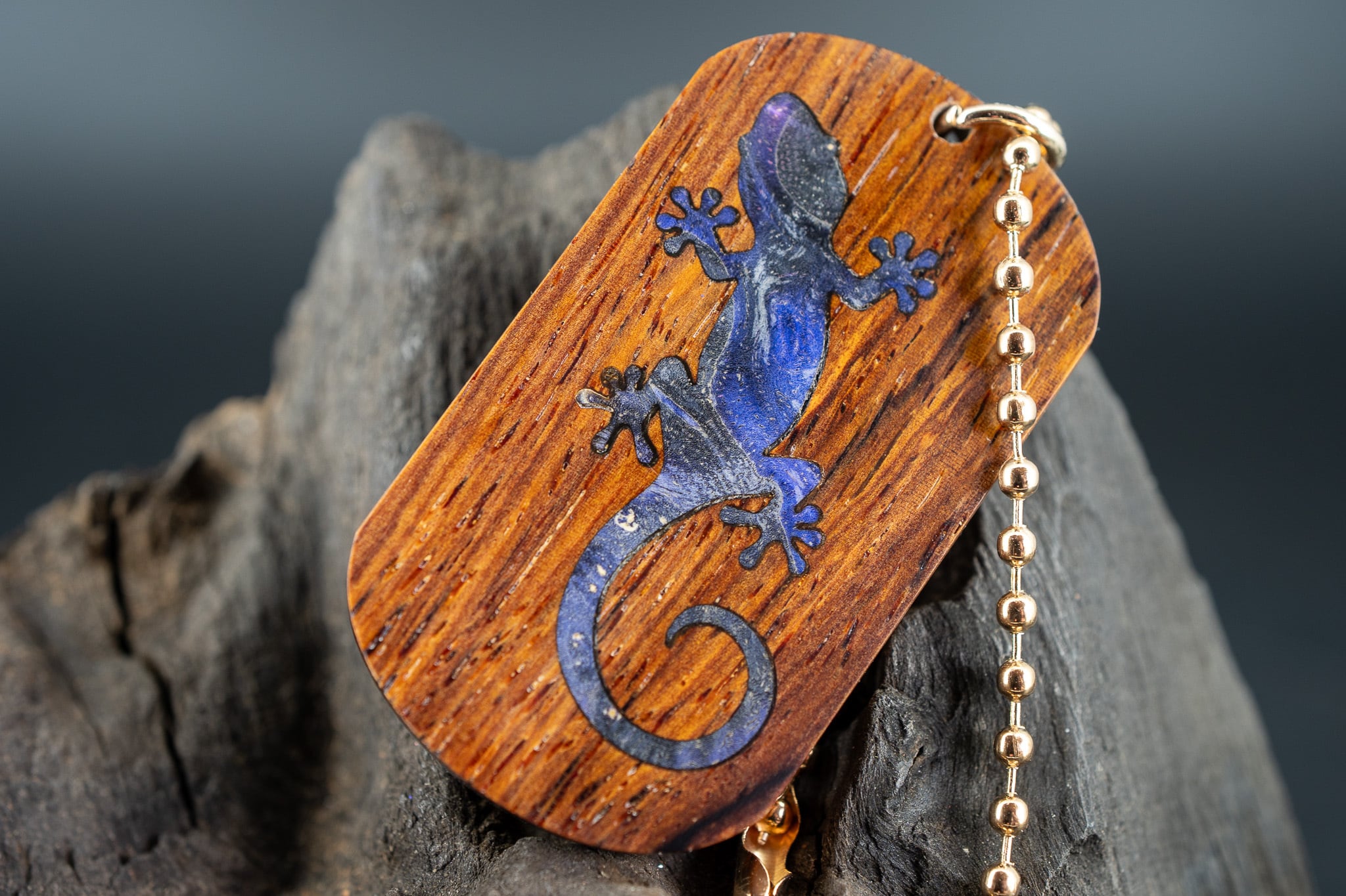 【 エスニックなローズウッド 】 ココボロ ドッグタグ 木象嵌 木登りトカゲ