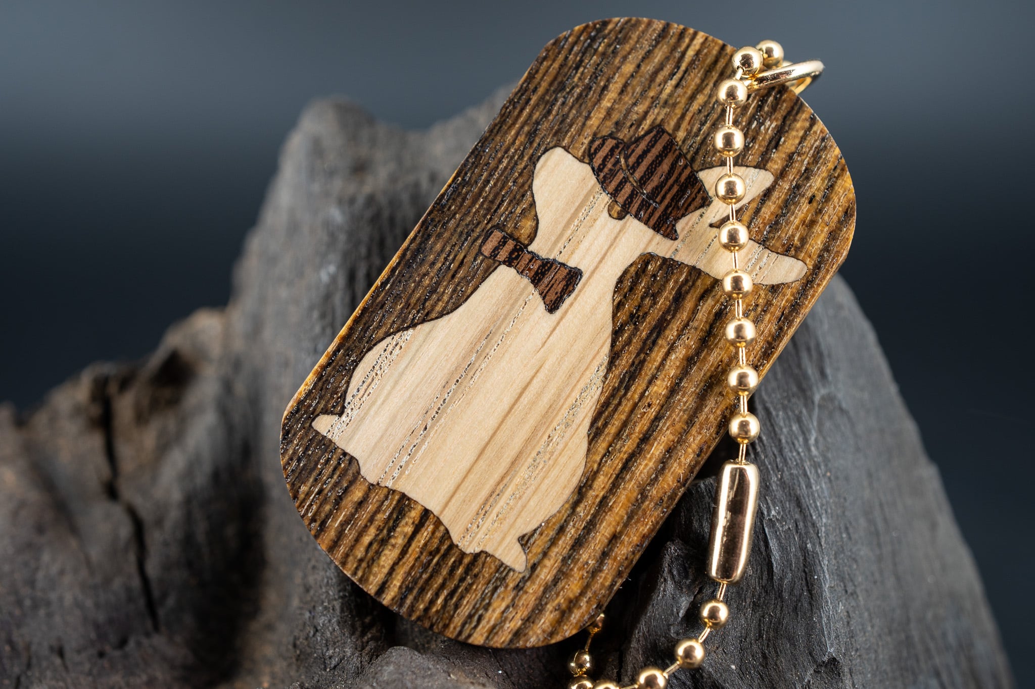 ※【黄王檀】リオグランデパリサンダー ドッグタグ 木象嵌 三月ウサギ