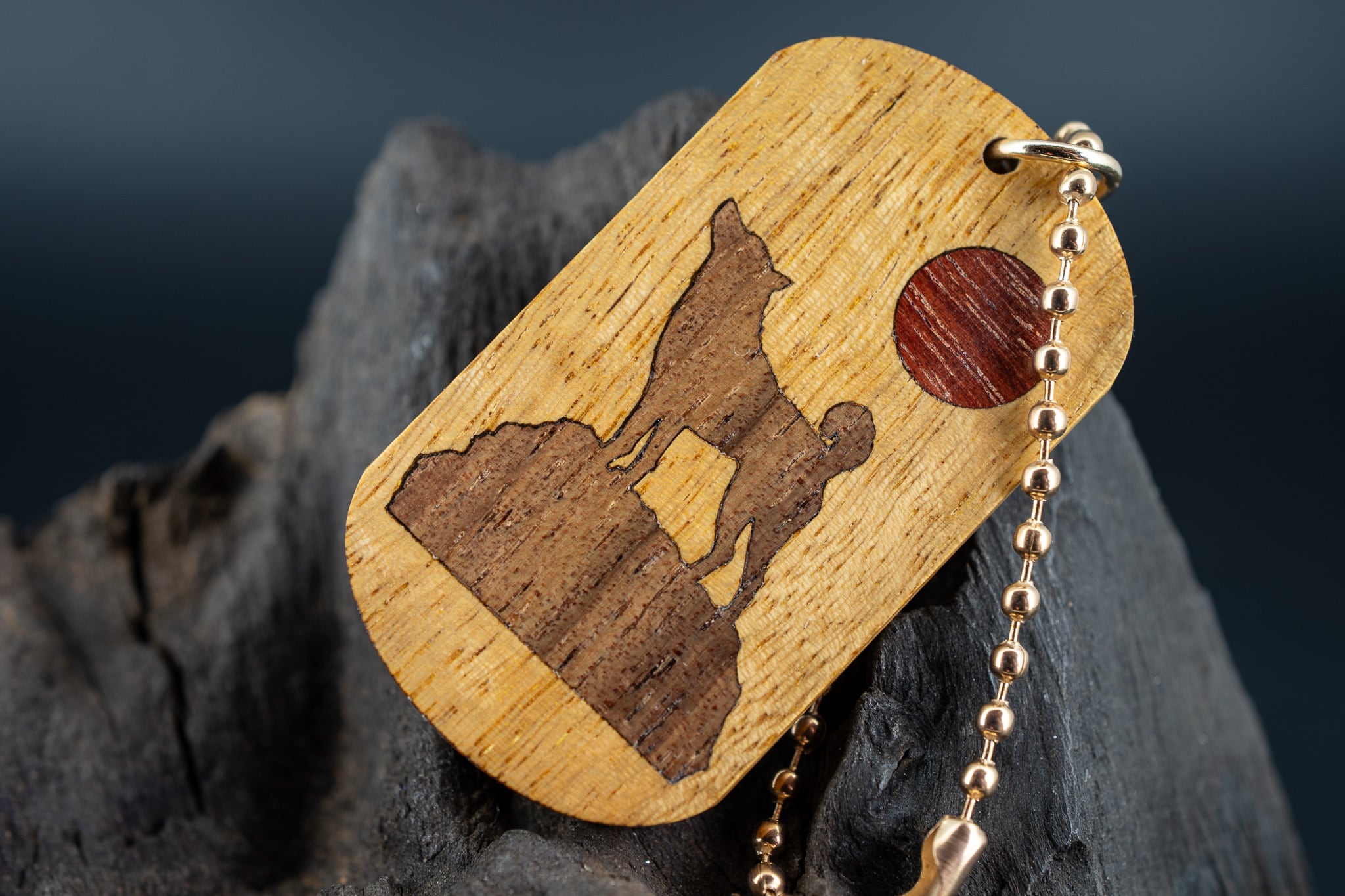 【 悪魔の樹 】モビンギ ドッグタグ 木象嵌 日の出の丘