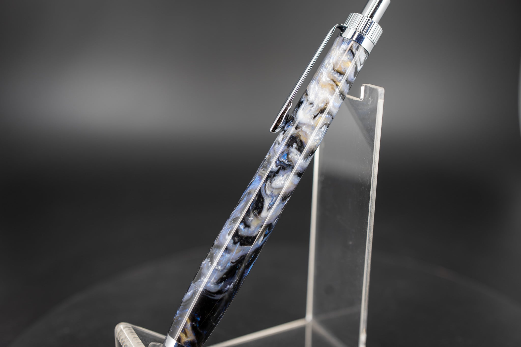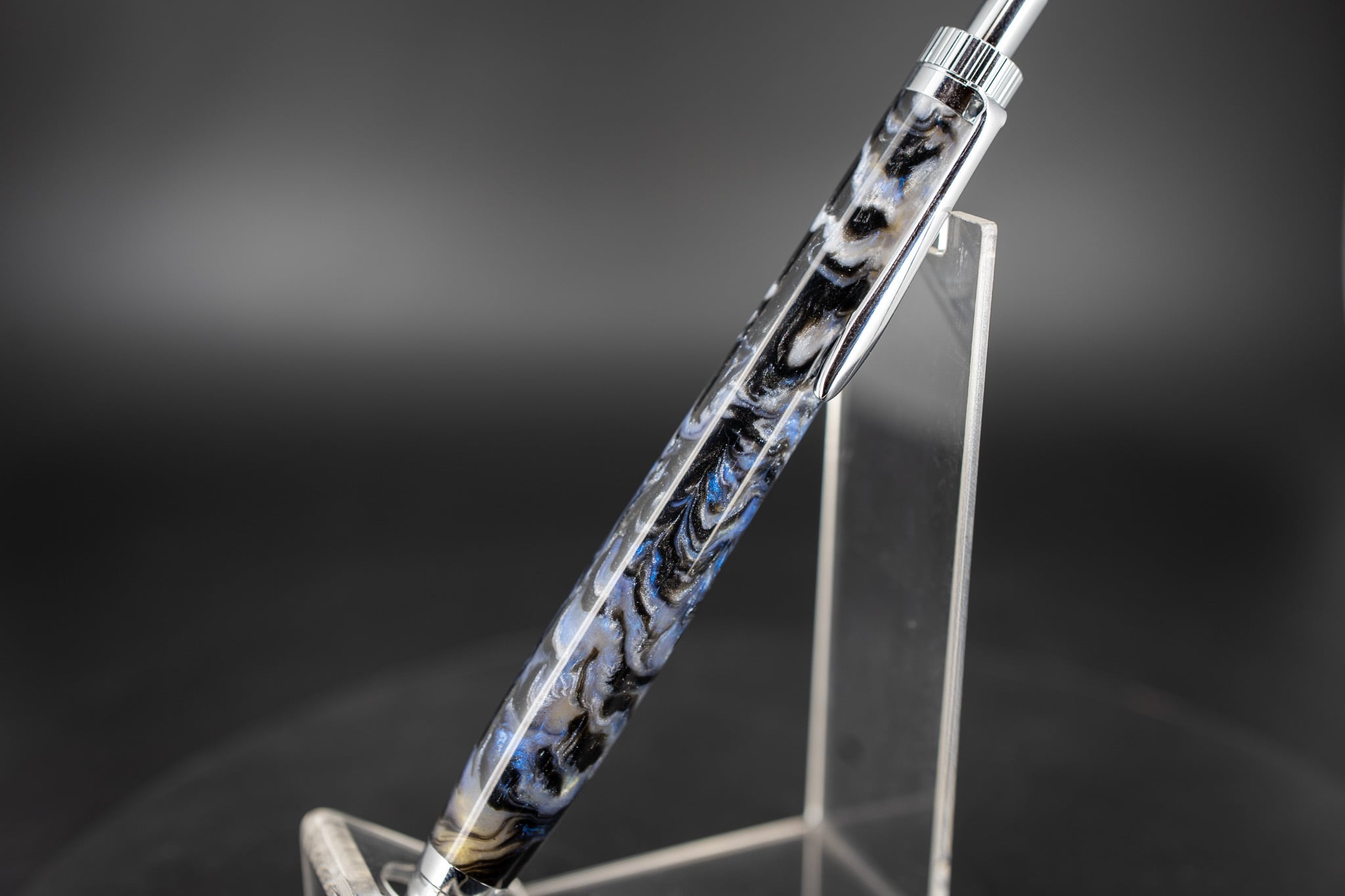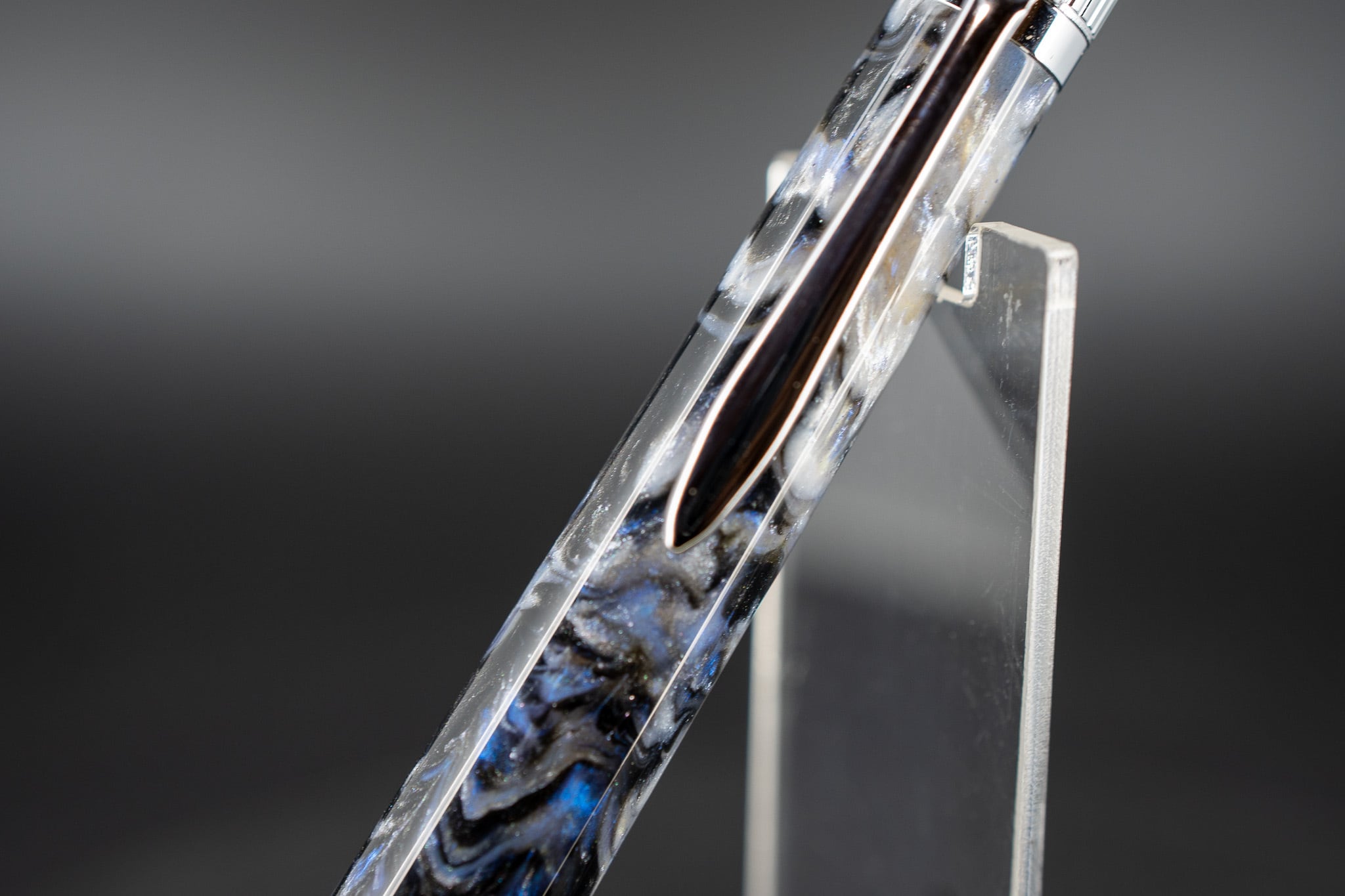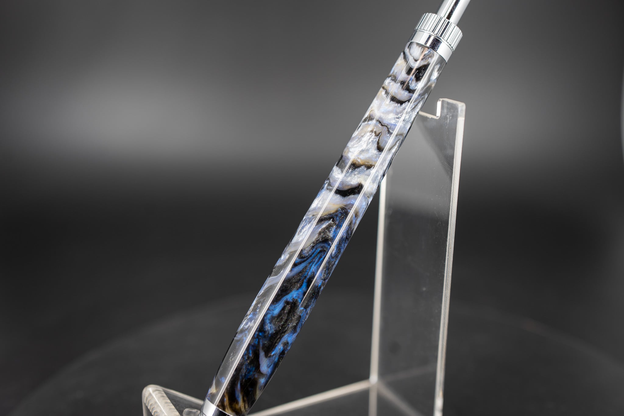 煌めくモノクロに美しい青が大きくマーブルを描く、アバロンシェルのような一本。