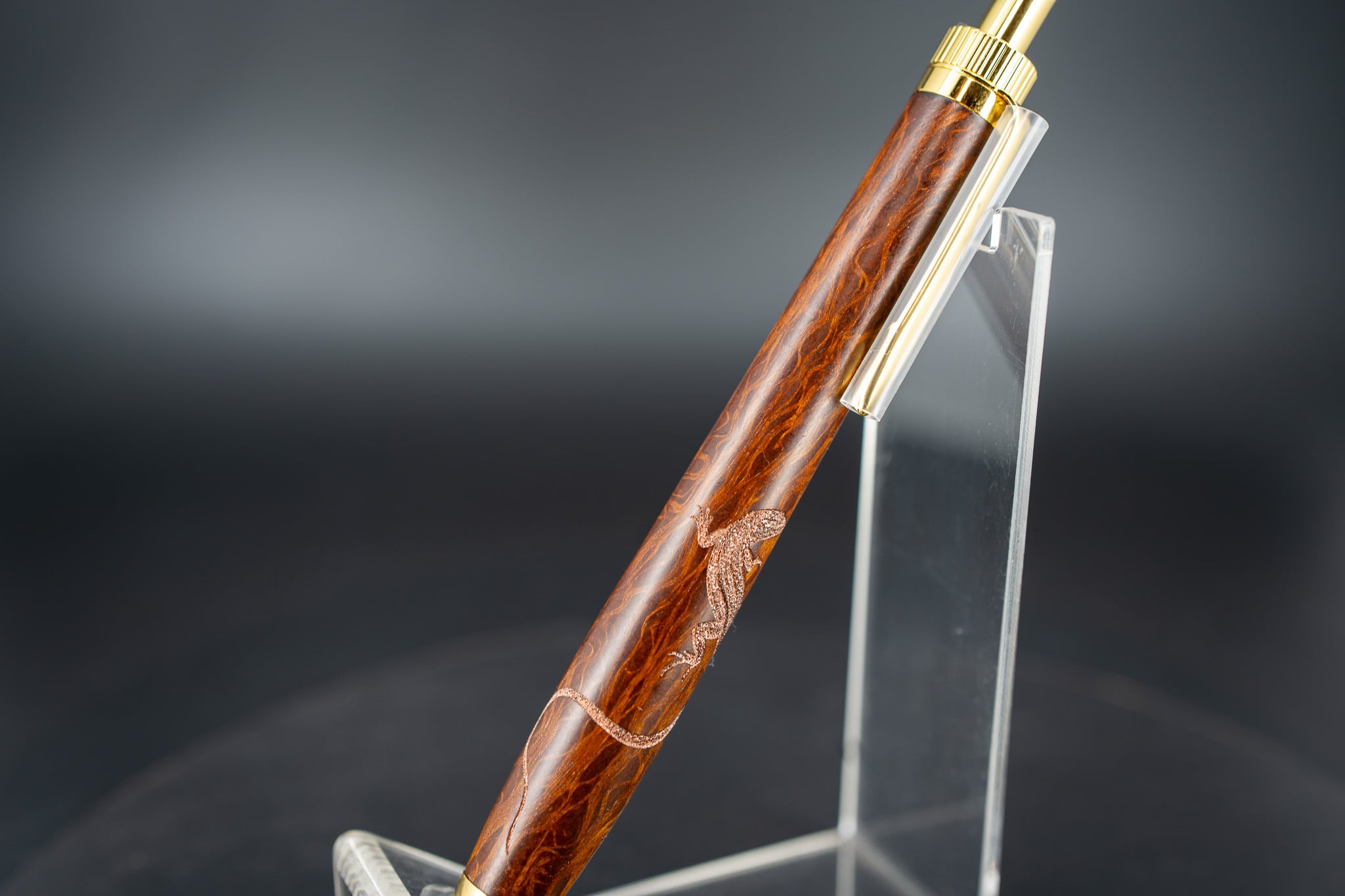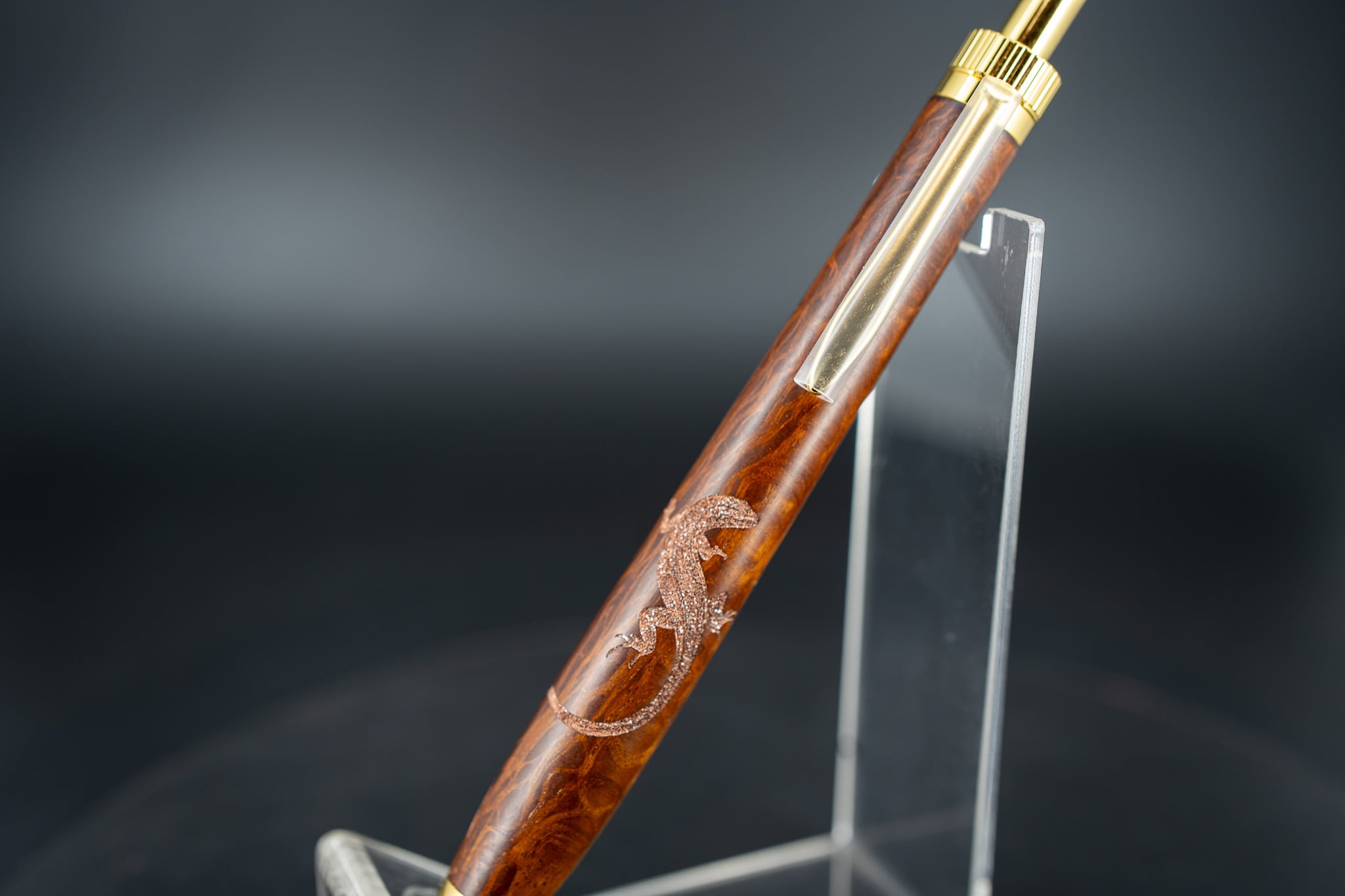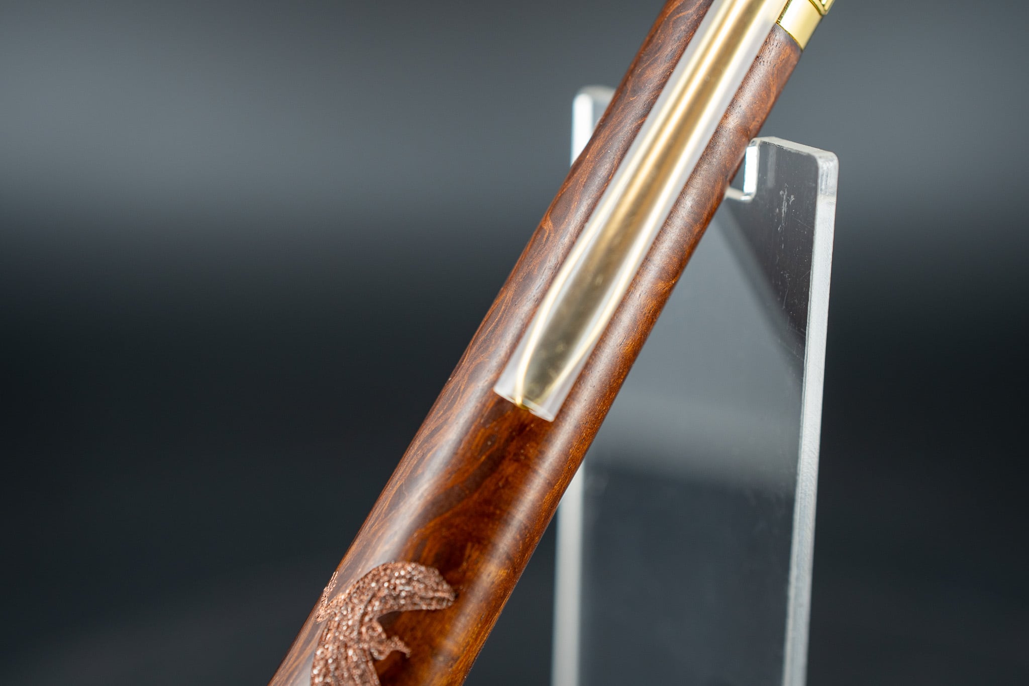 【強さと美しさの象徴】 シーオーク 拭き漆 沈金 木を登るカナヘビ gold BP