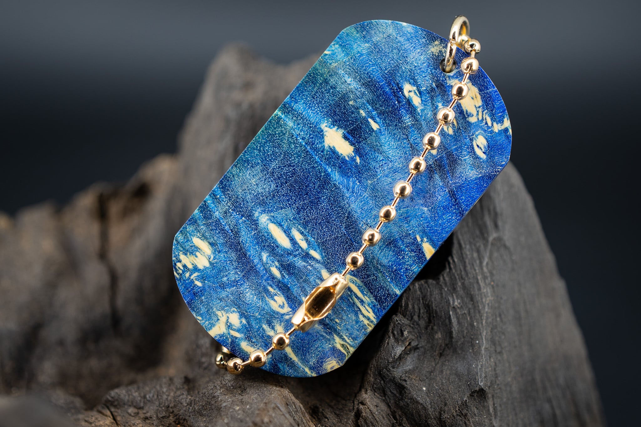 材はメープルバールに青色の特殊な樹脂を流し固定化させた、スタビライズドウッド。