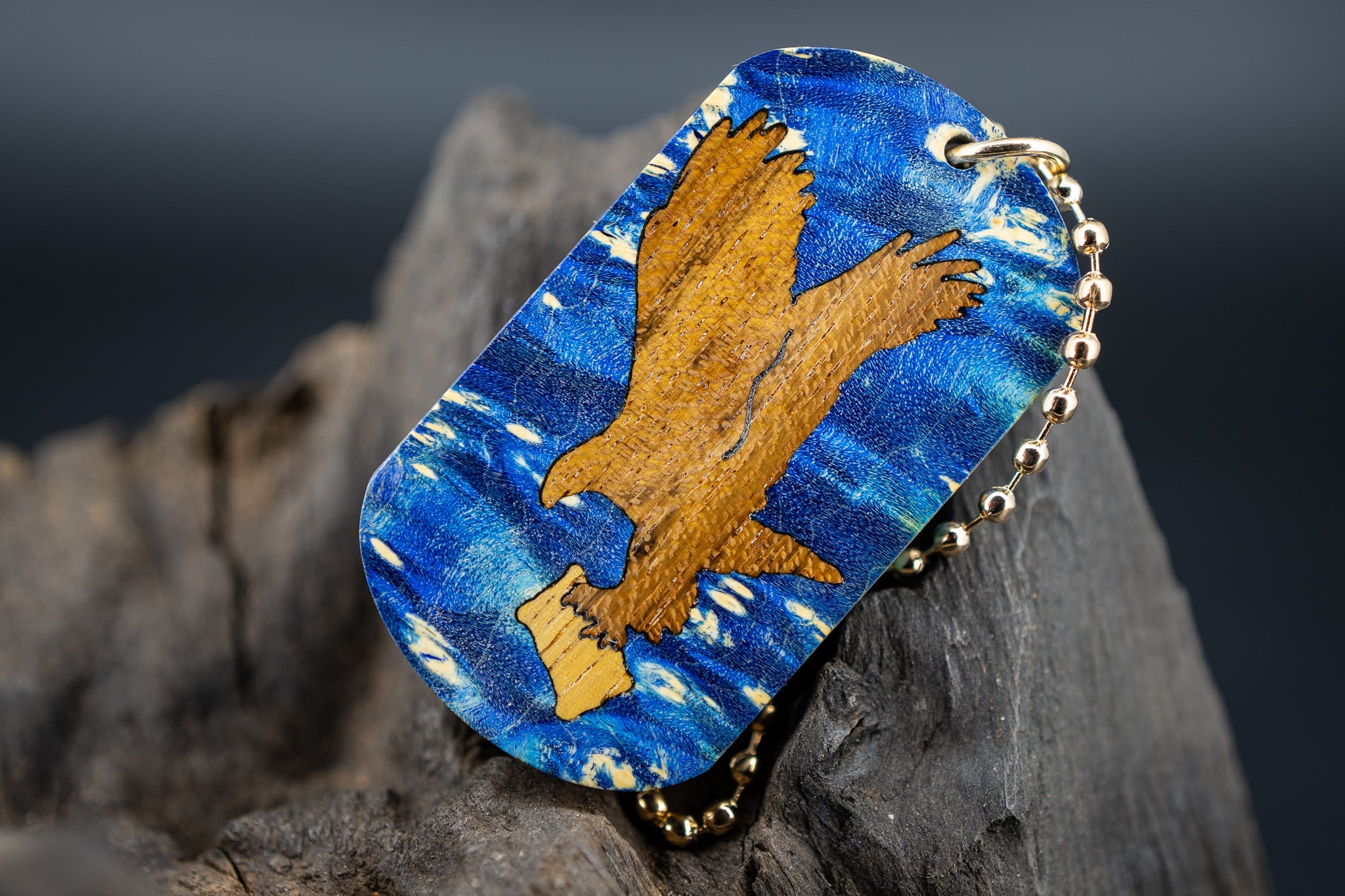 【カナダの象徴】 ハードメープル 瘤杢 スタビライズウッド ドッグタグ 木象嵌 トンビと油揚げ