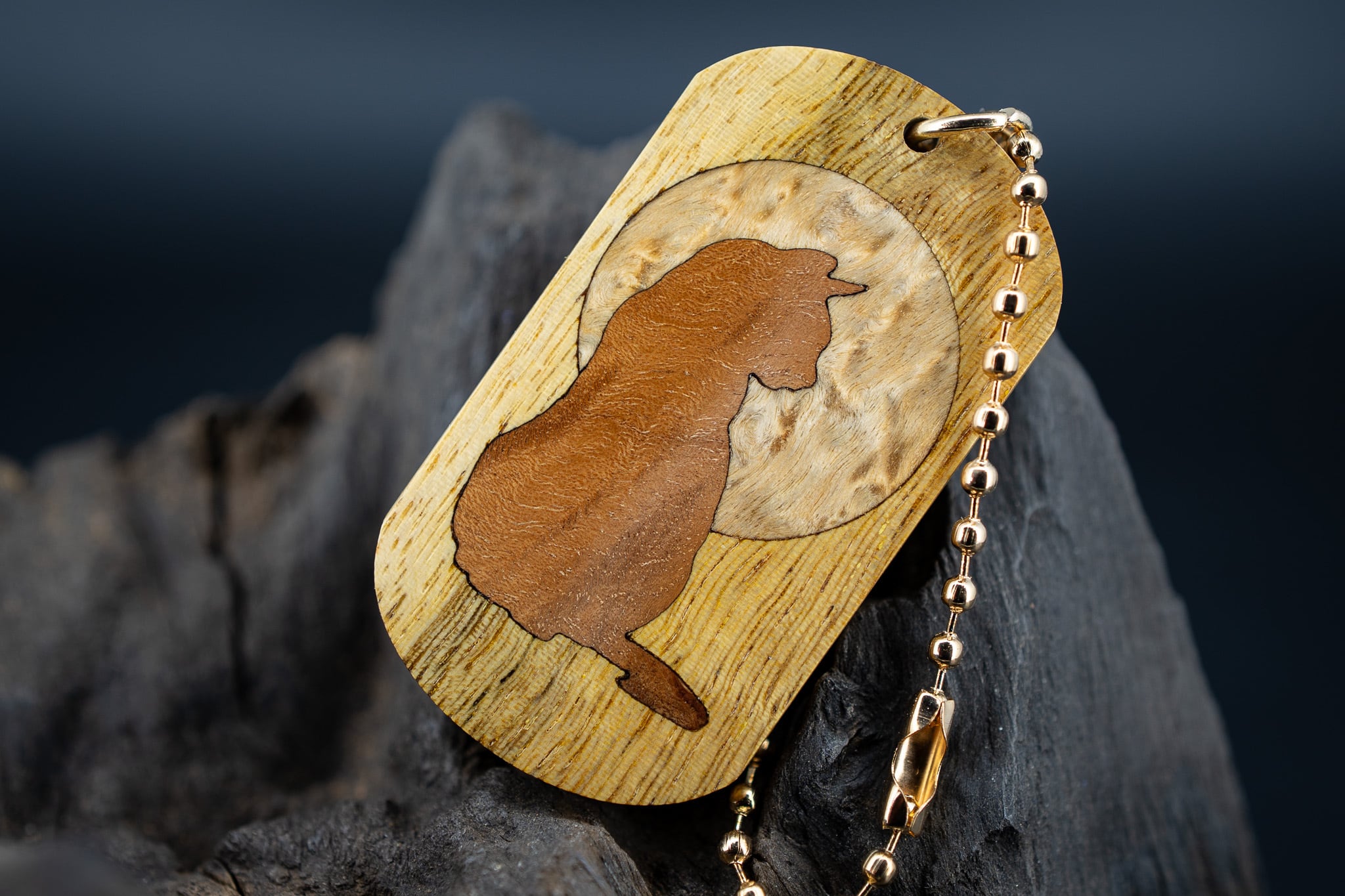 【 悪魔の樹 】モビンギ ドッグタグ 木象嵌 横を向く上品な猫