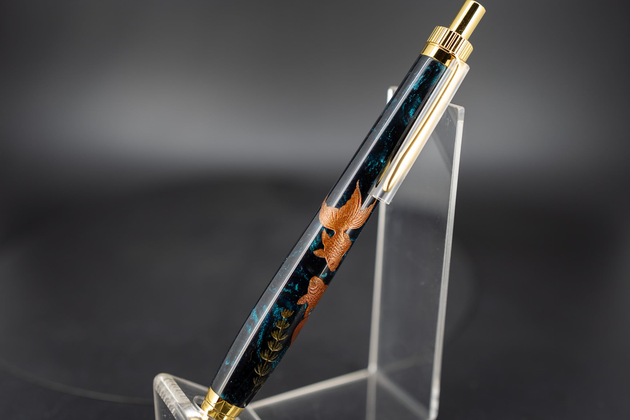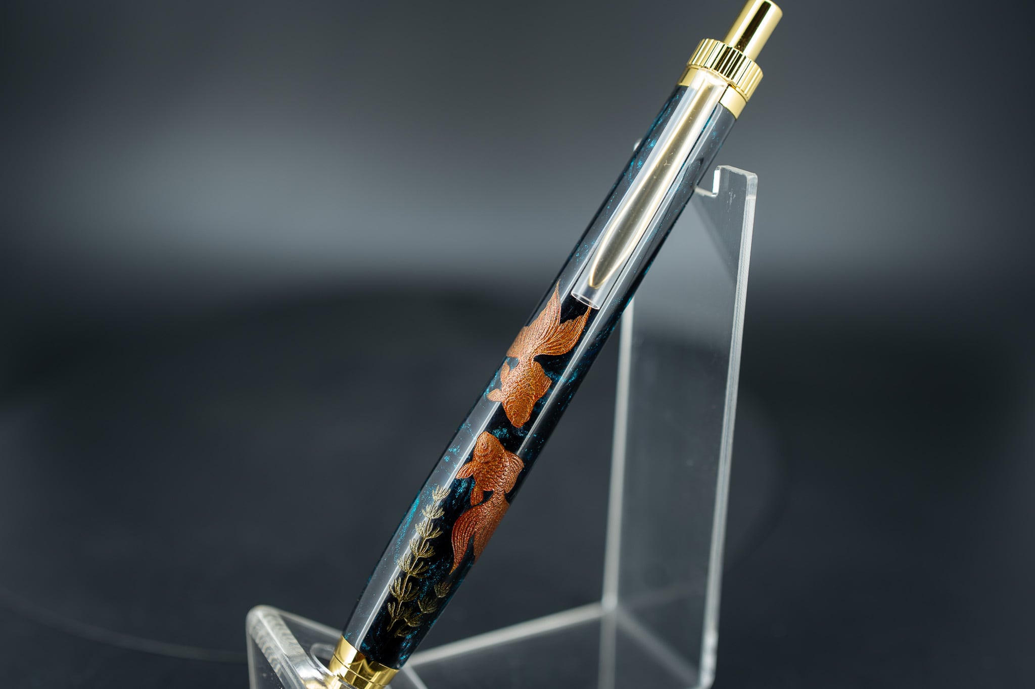 【創造性と透明美】 レジン 沈金 金魚と水草 gold BP