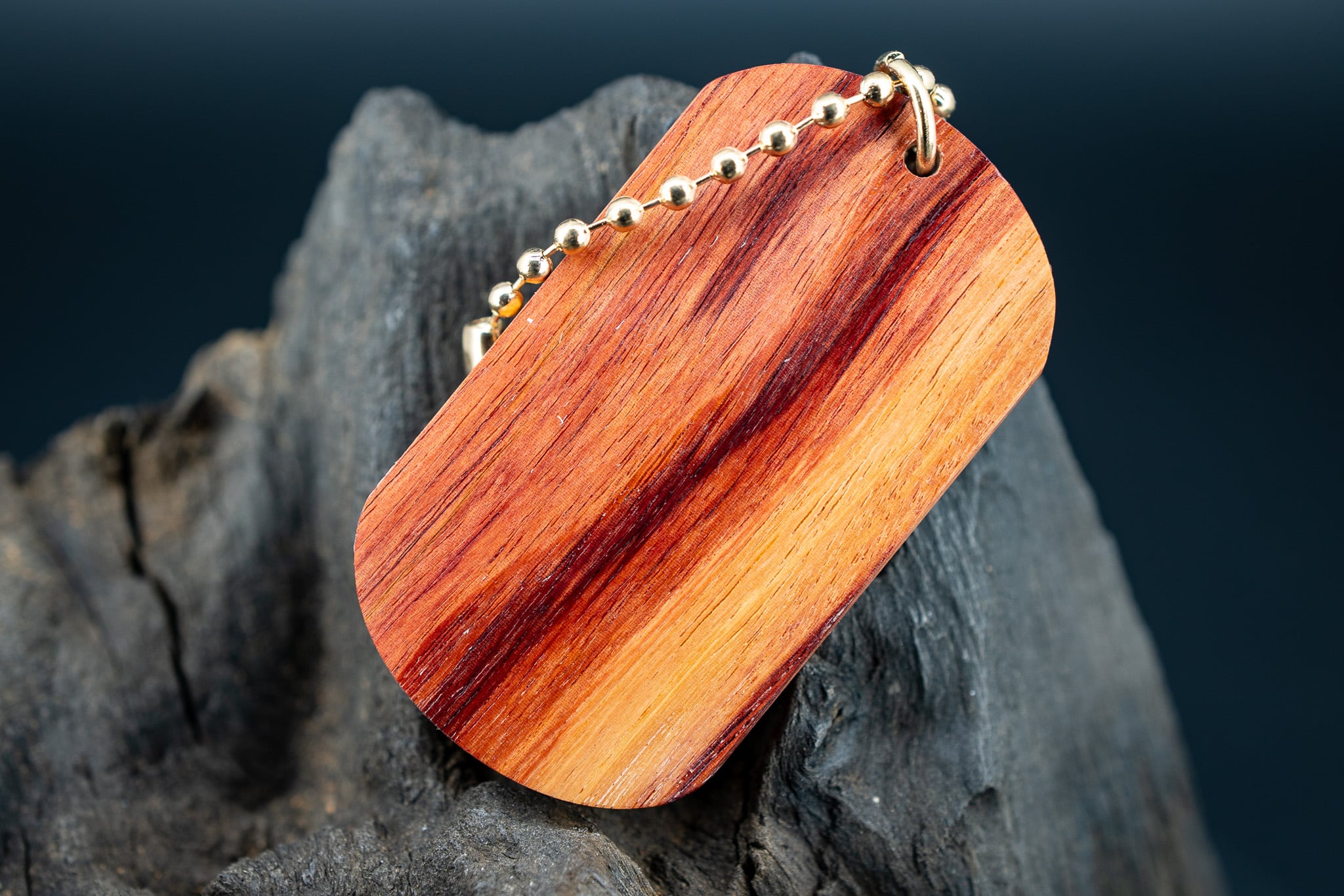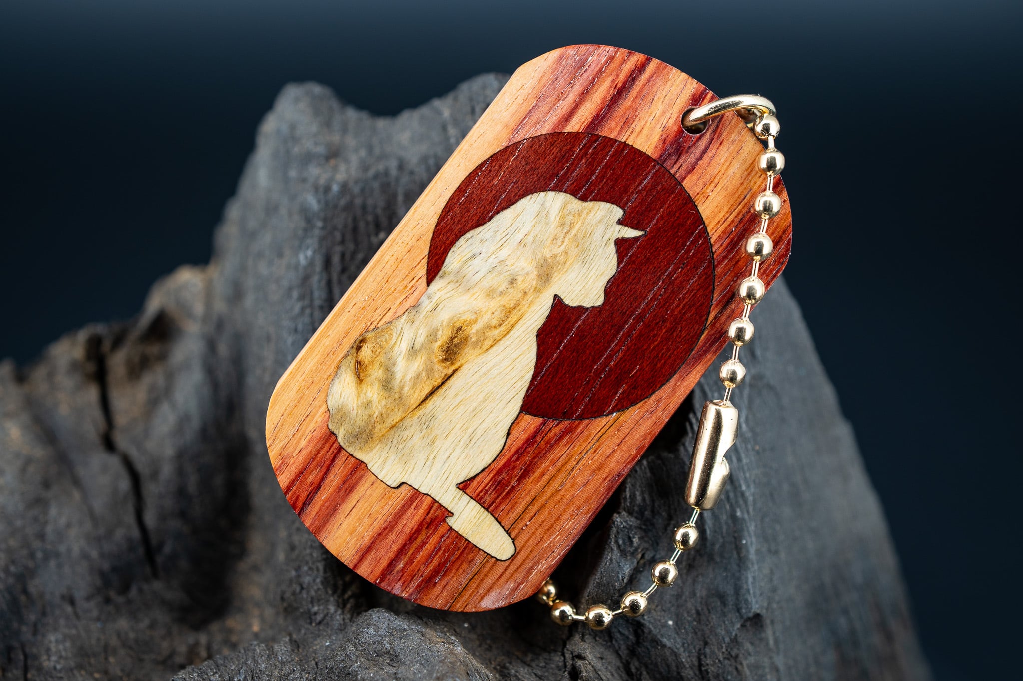 【 木材の女王】 チューリップウッド ドッグタグ 木象嵌 横を向く上品な猫