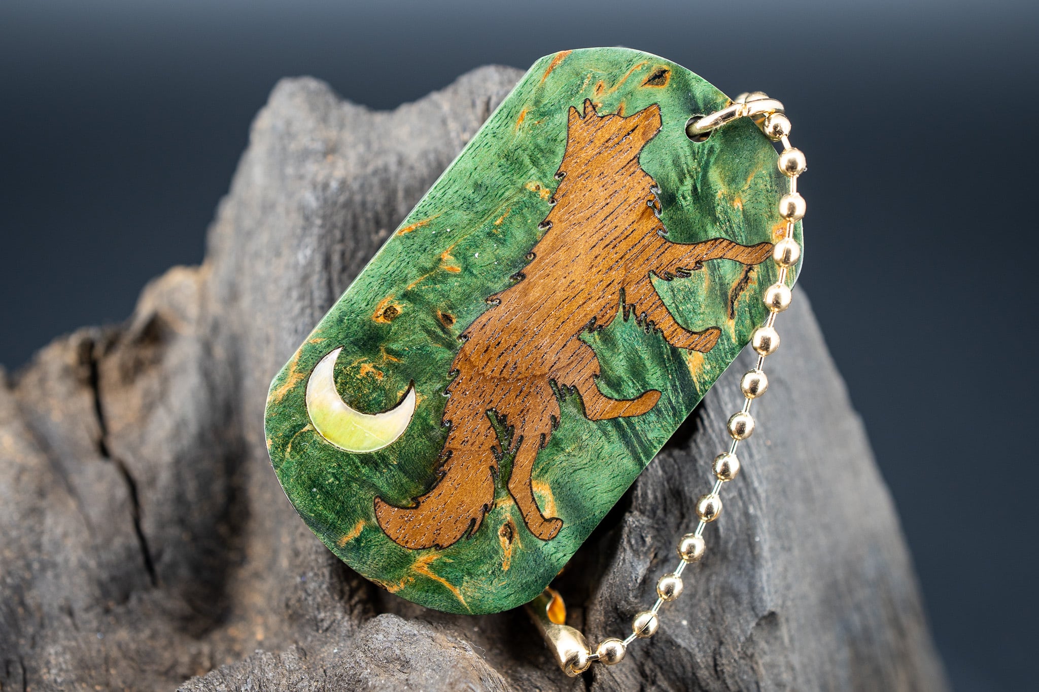【 北欧の銘木 】マスールバーチ スタビライズウッド ドッグタグ 木象嵌 闊歩