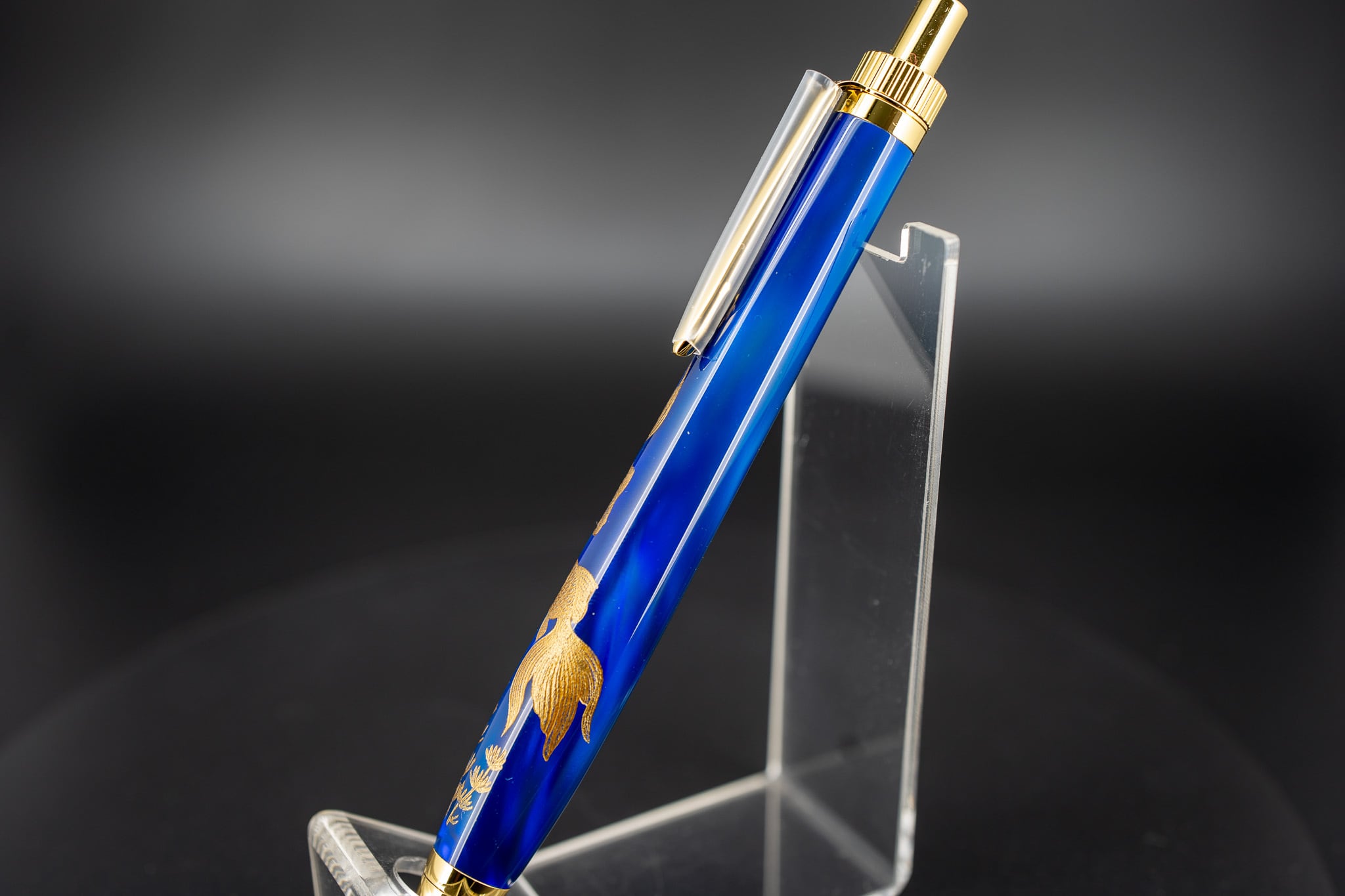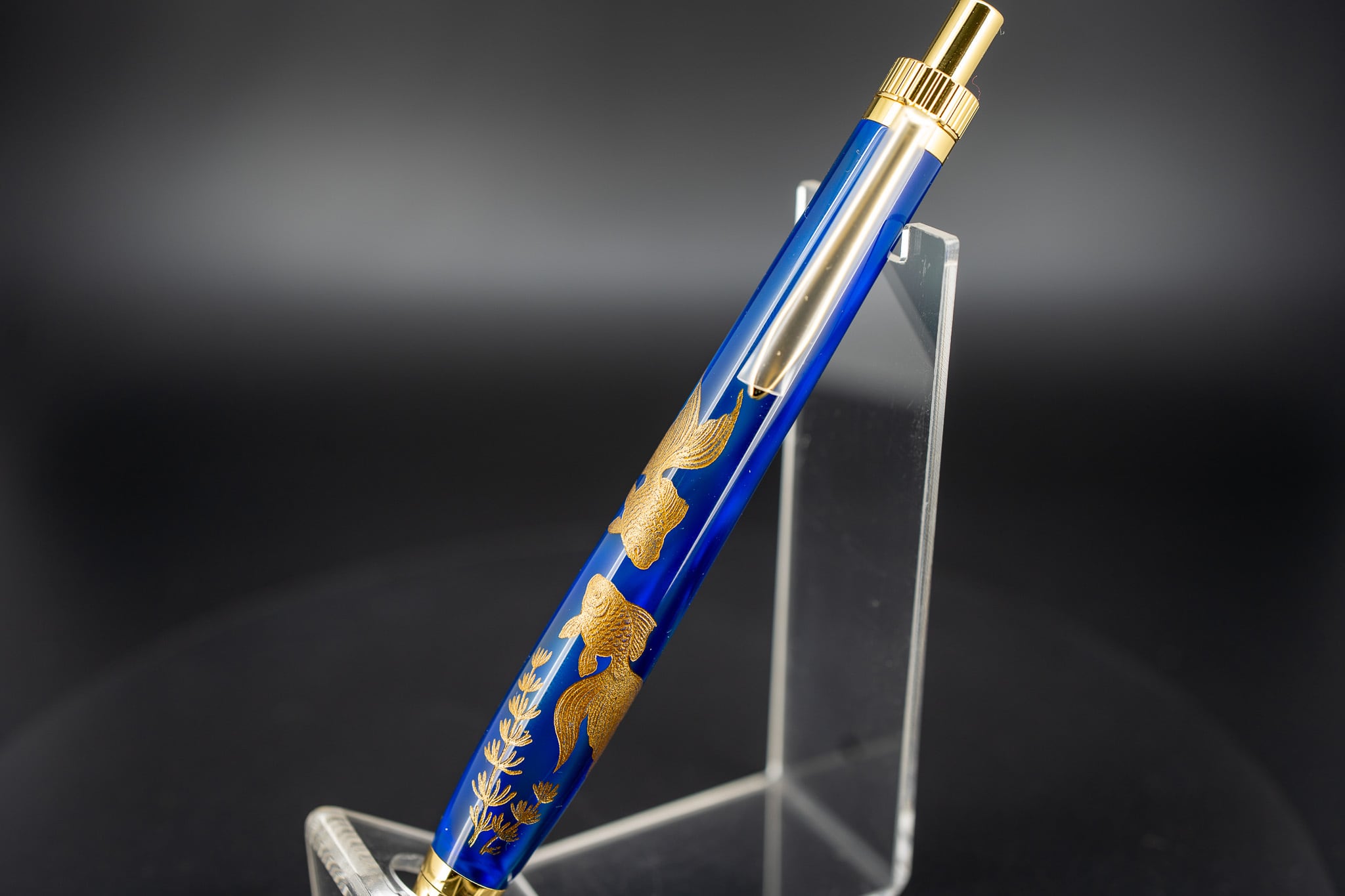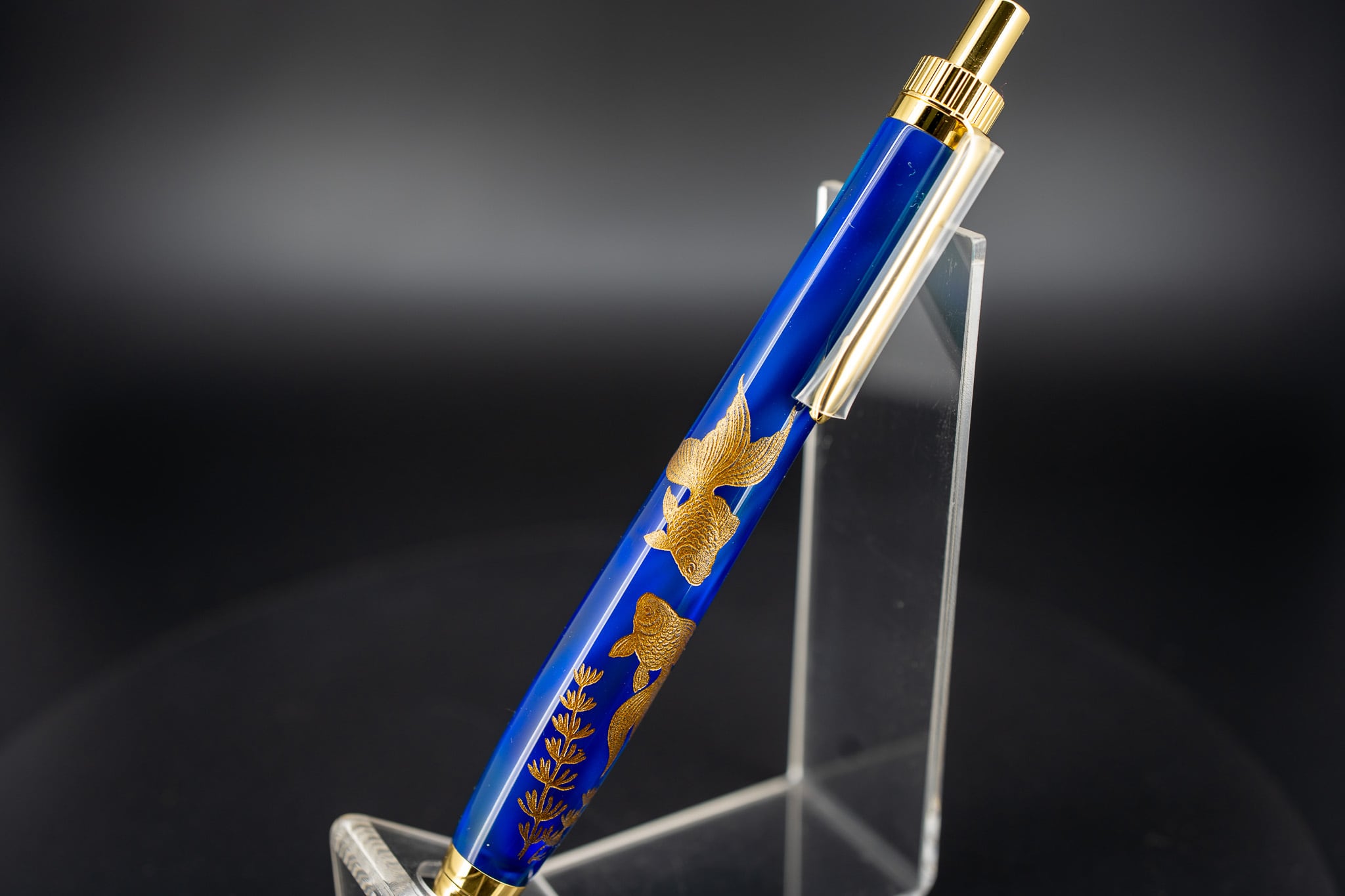 ※【科学技術と芸術の宝石】ハイブリッドオパール 沈金 金魚と水草 gold BP