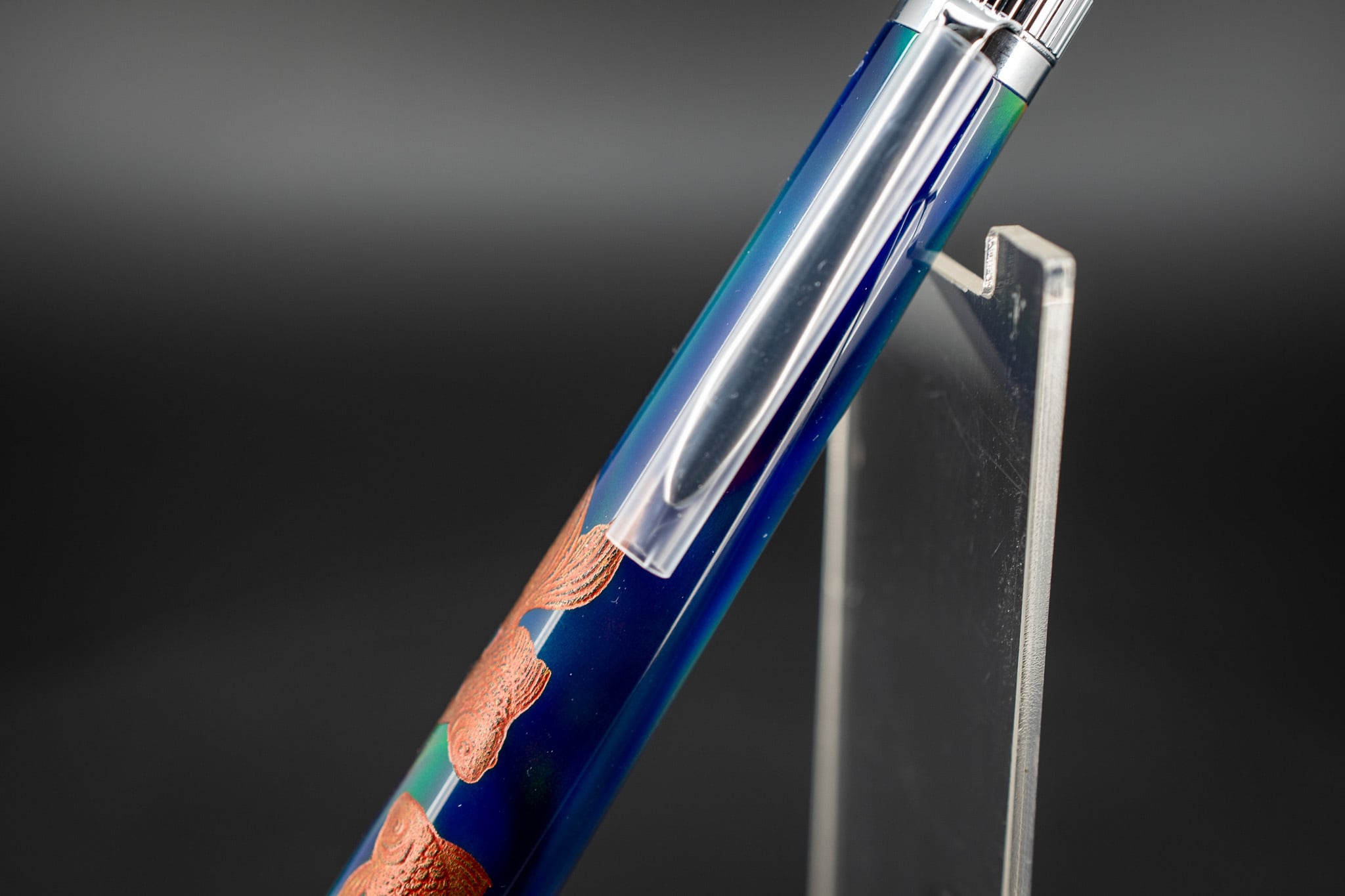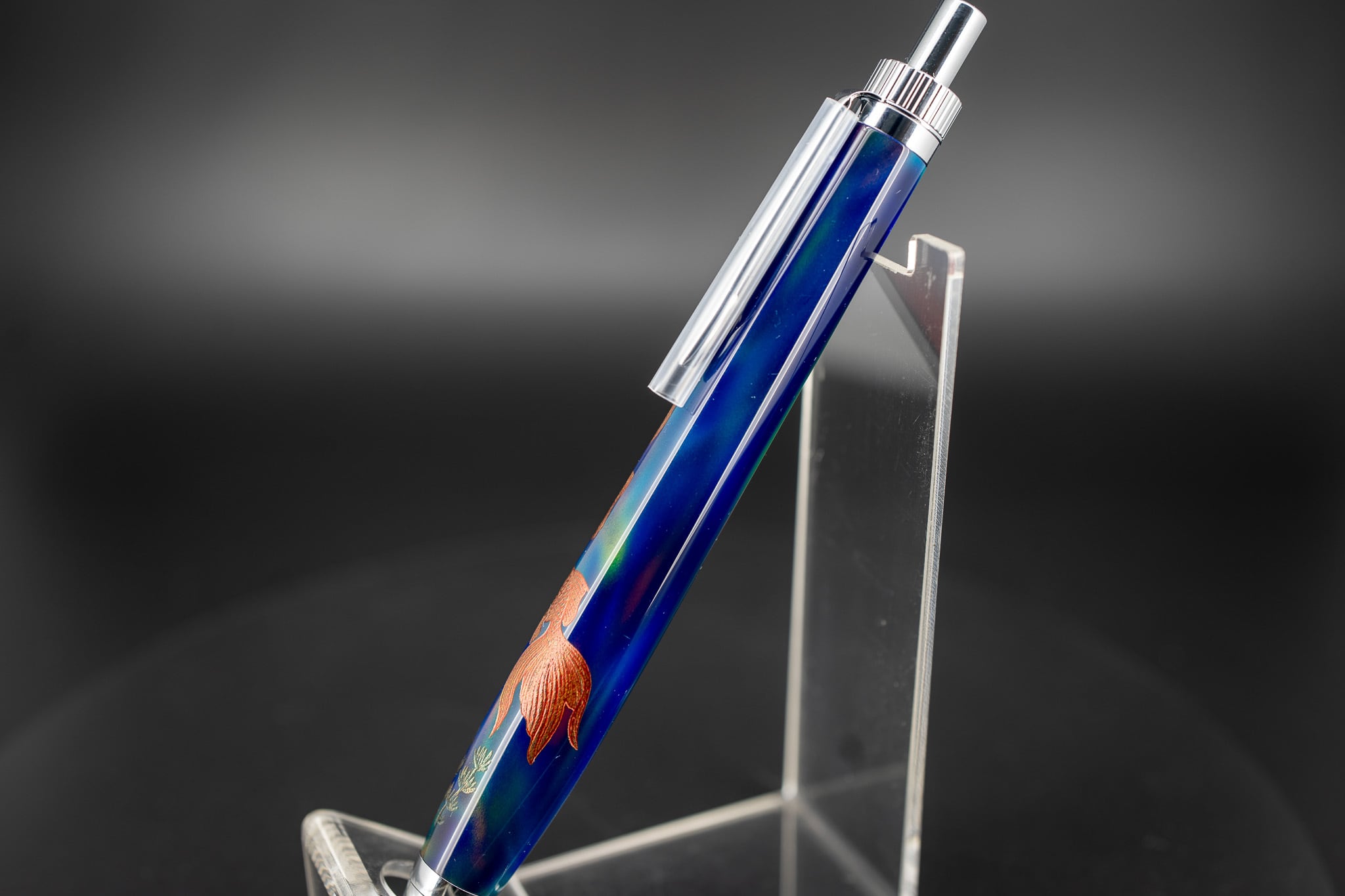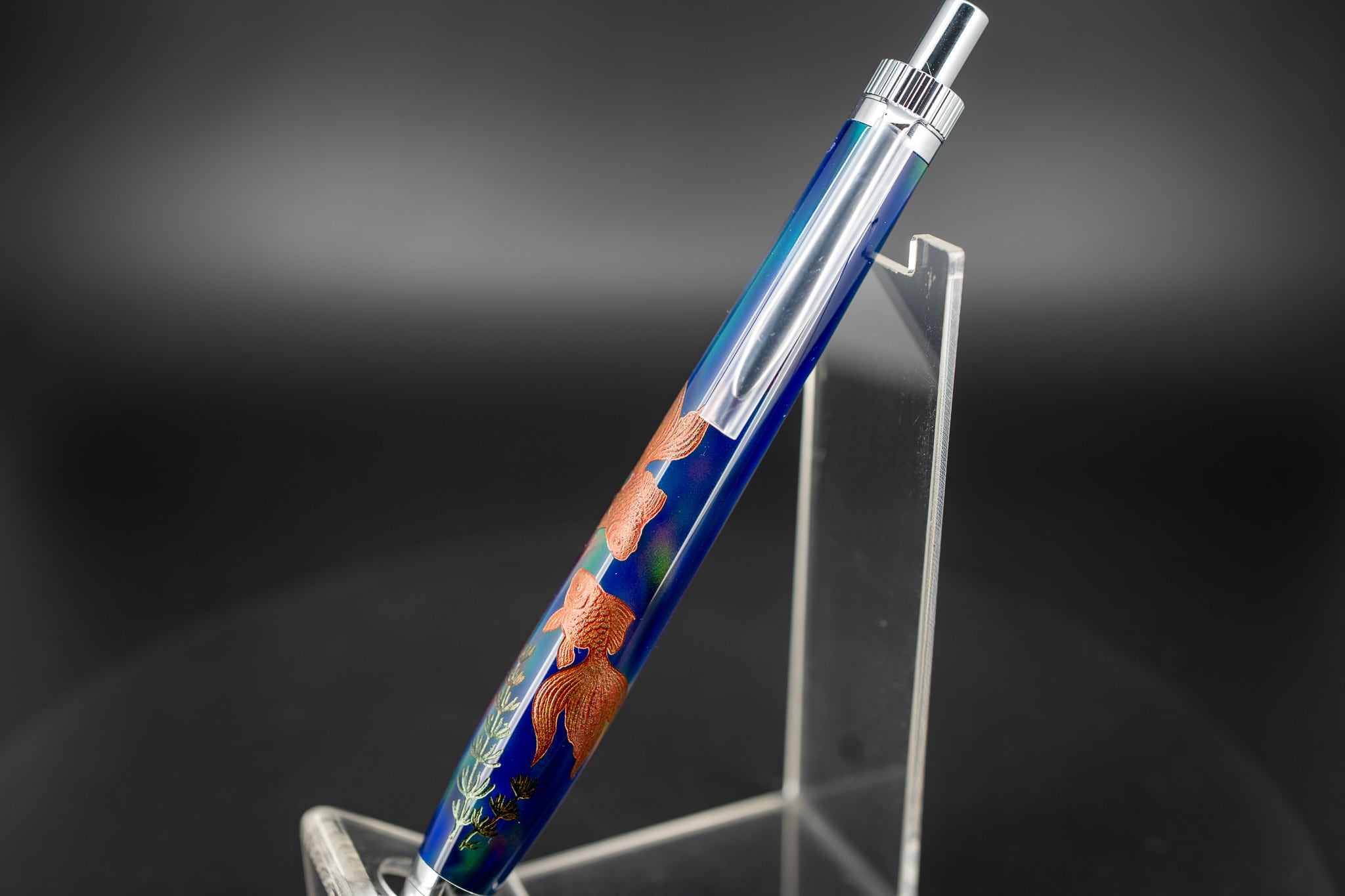 ※【科学技術と芸術の宝石】ハイブリッドオパール 沈金 金魚と水草 silver BP