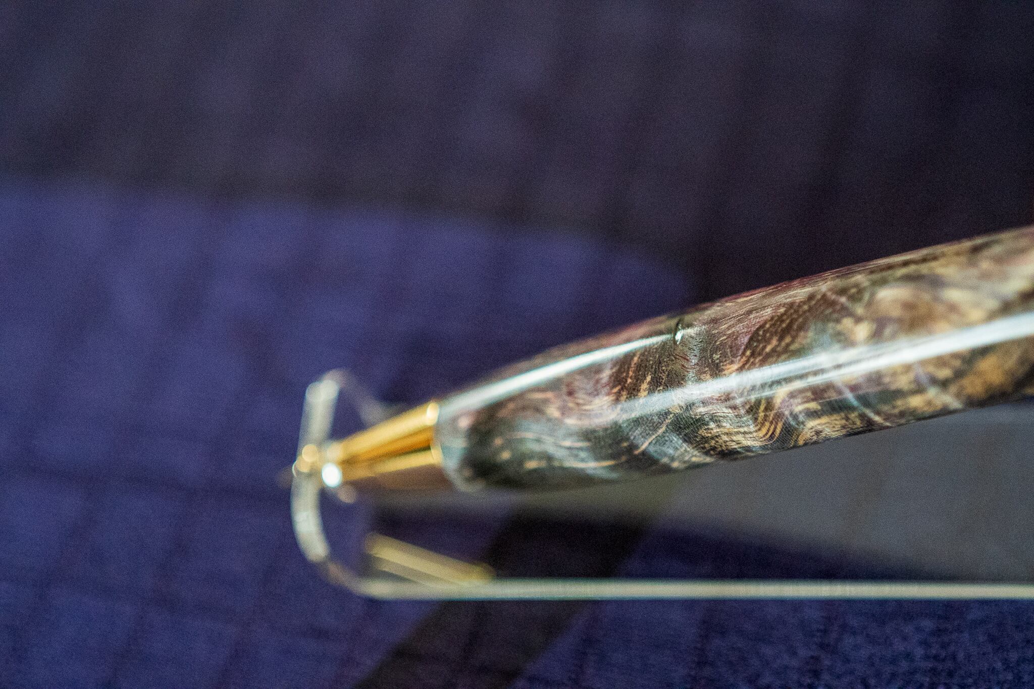 イマジナリー朧「棘」 と名を打つ、栃の変わり杢に複数の色を流し込まれた逸品。