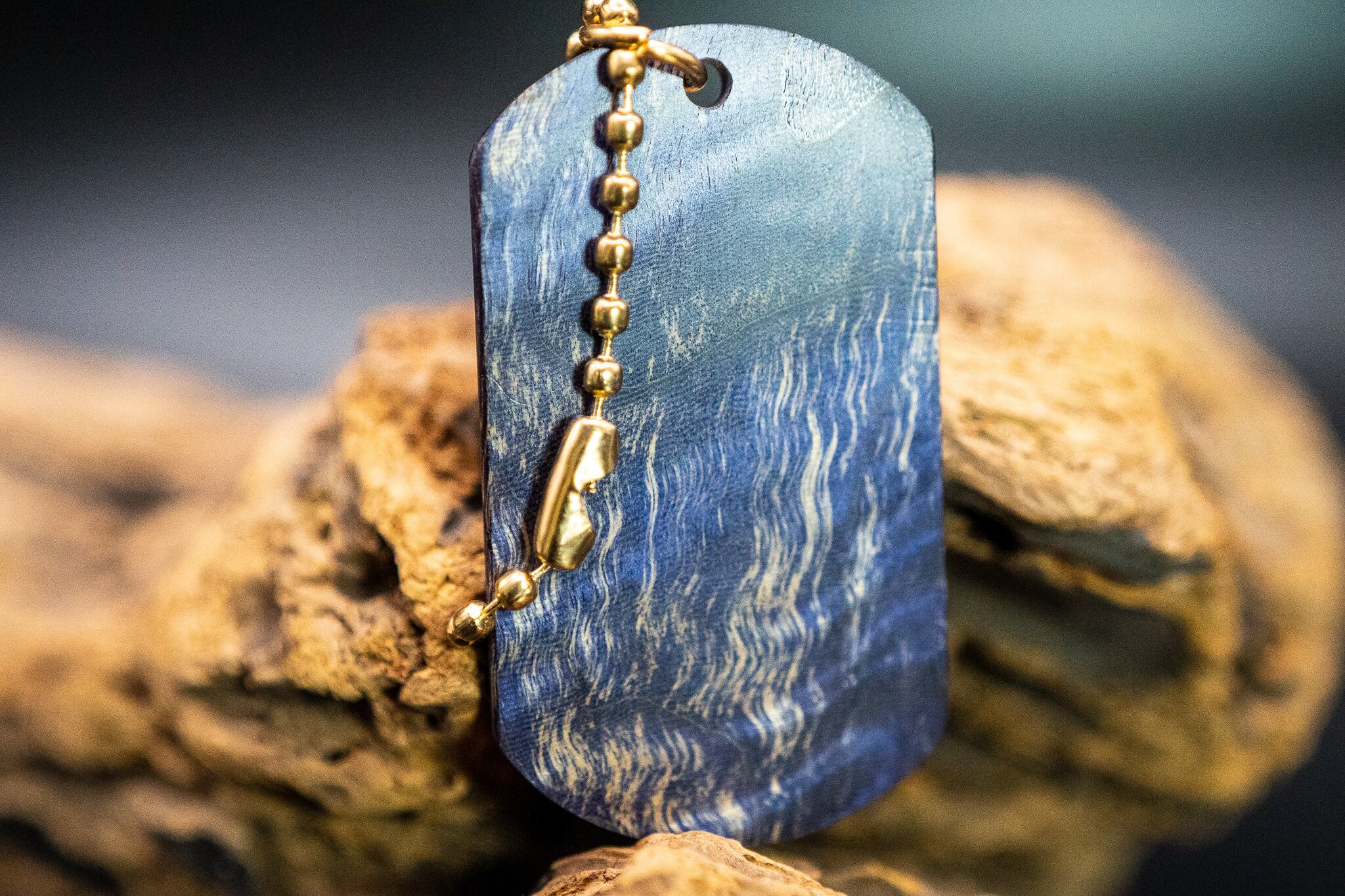 【朧パープル】 スタビライズウッド 栃 ドッグタグ 象嵌 満月と横を向く猫