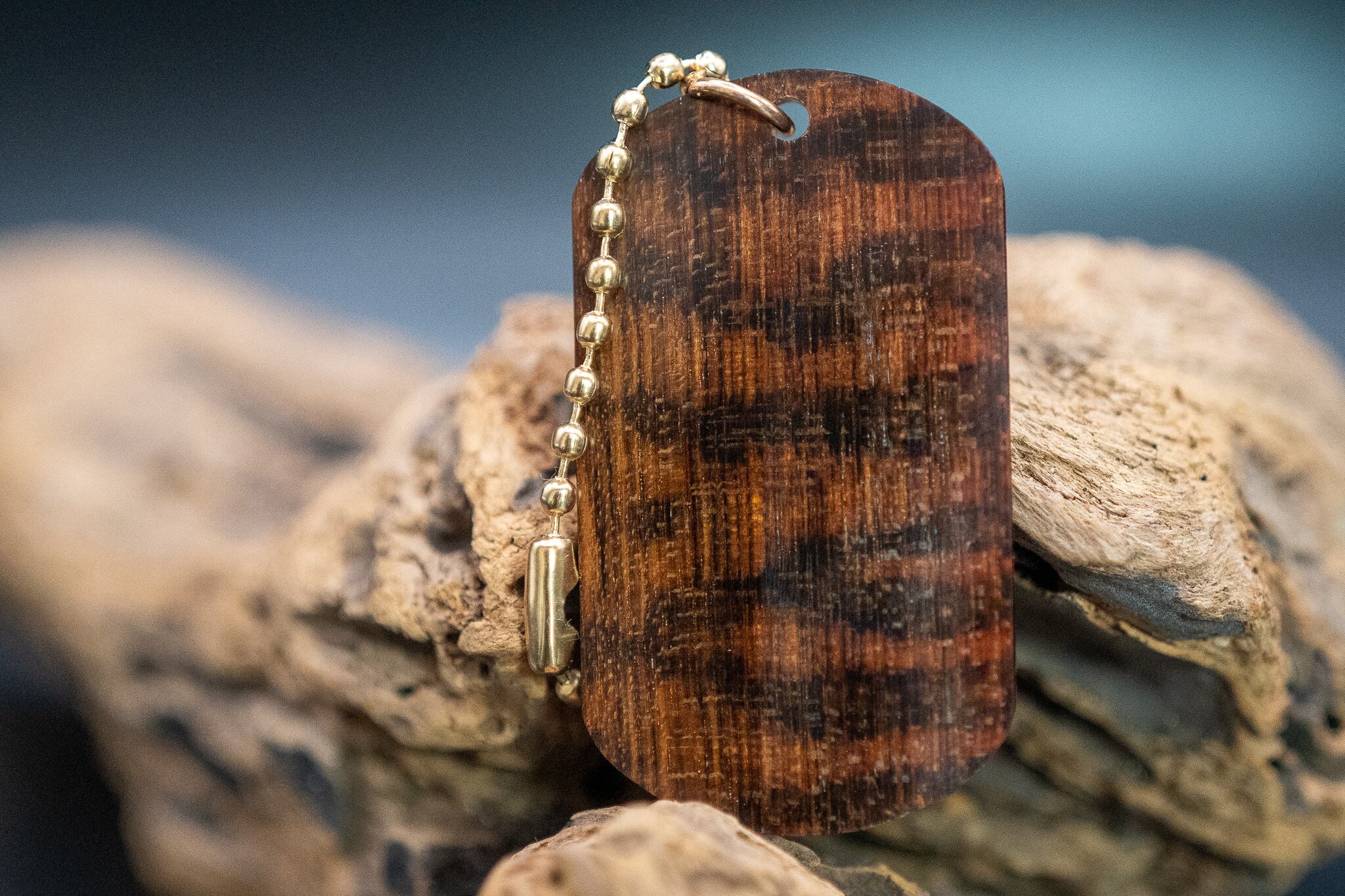 【 木のダイヤモンド 】スネークウッド ドッグタグ 象嵌 幸せを呼ぶ青い鳥