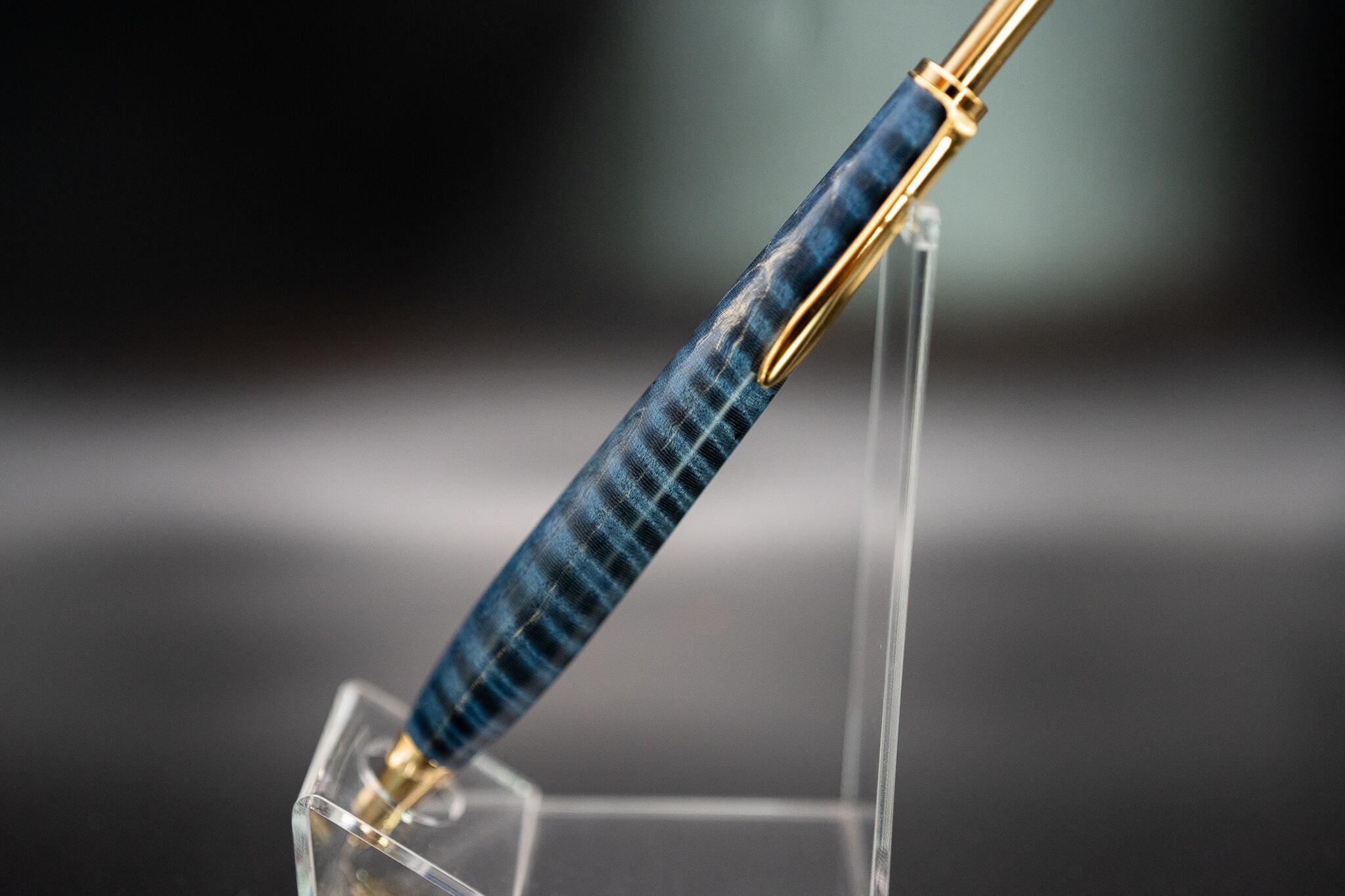 玄淵 と名を打つ、栃の縮杢に深い藍色が流し込まれた逸品。
