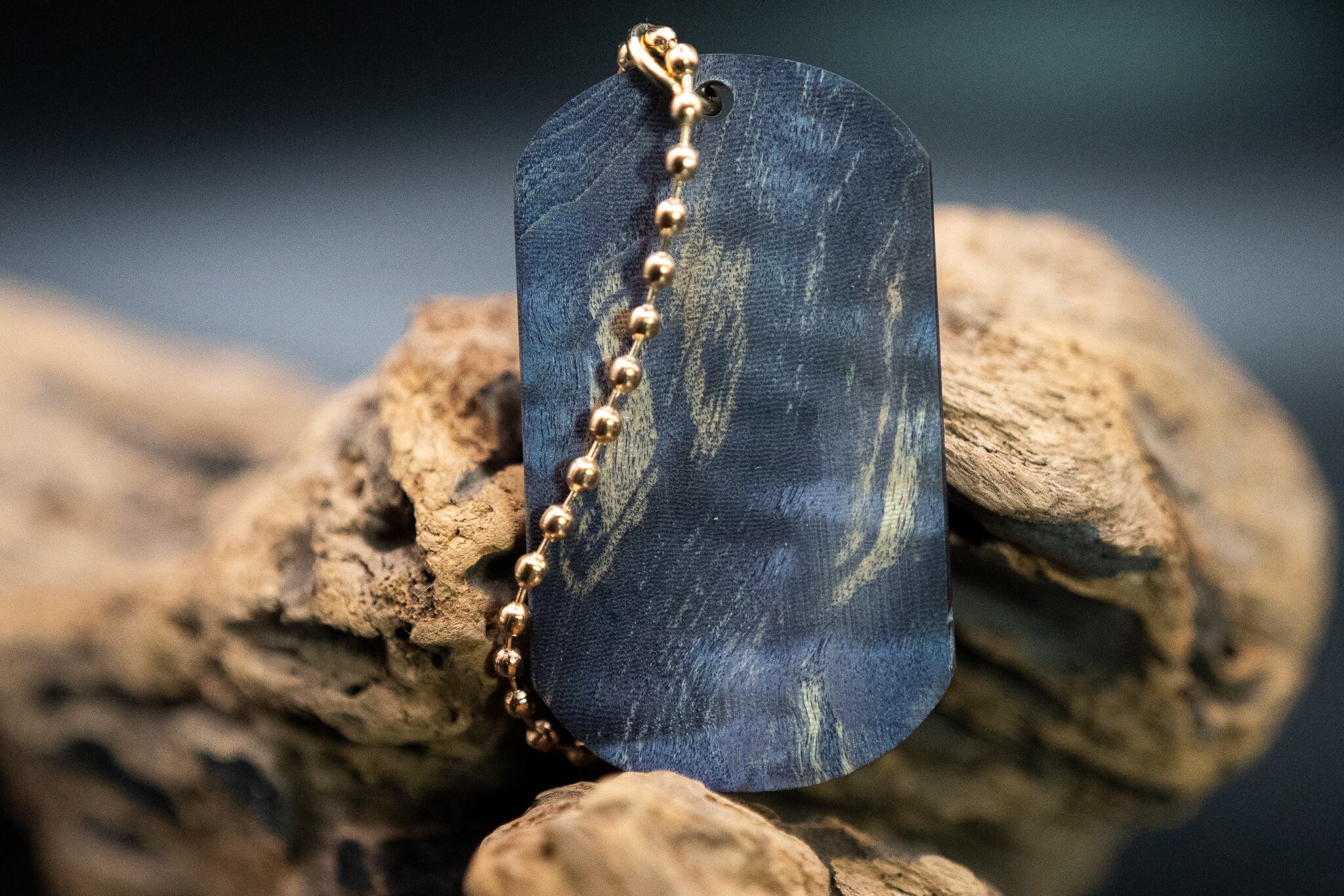 【 朧】スタビライズウッド 栃 ドッグタグ 象嵌 月と狼