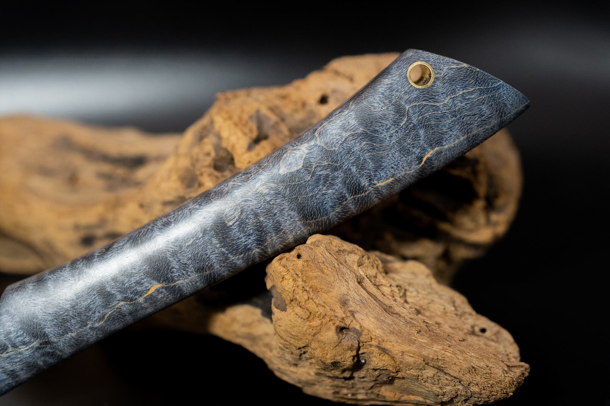 楓の虎杢にほんのりグレーがかった青が流し込まれた逸品。