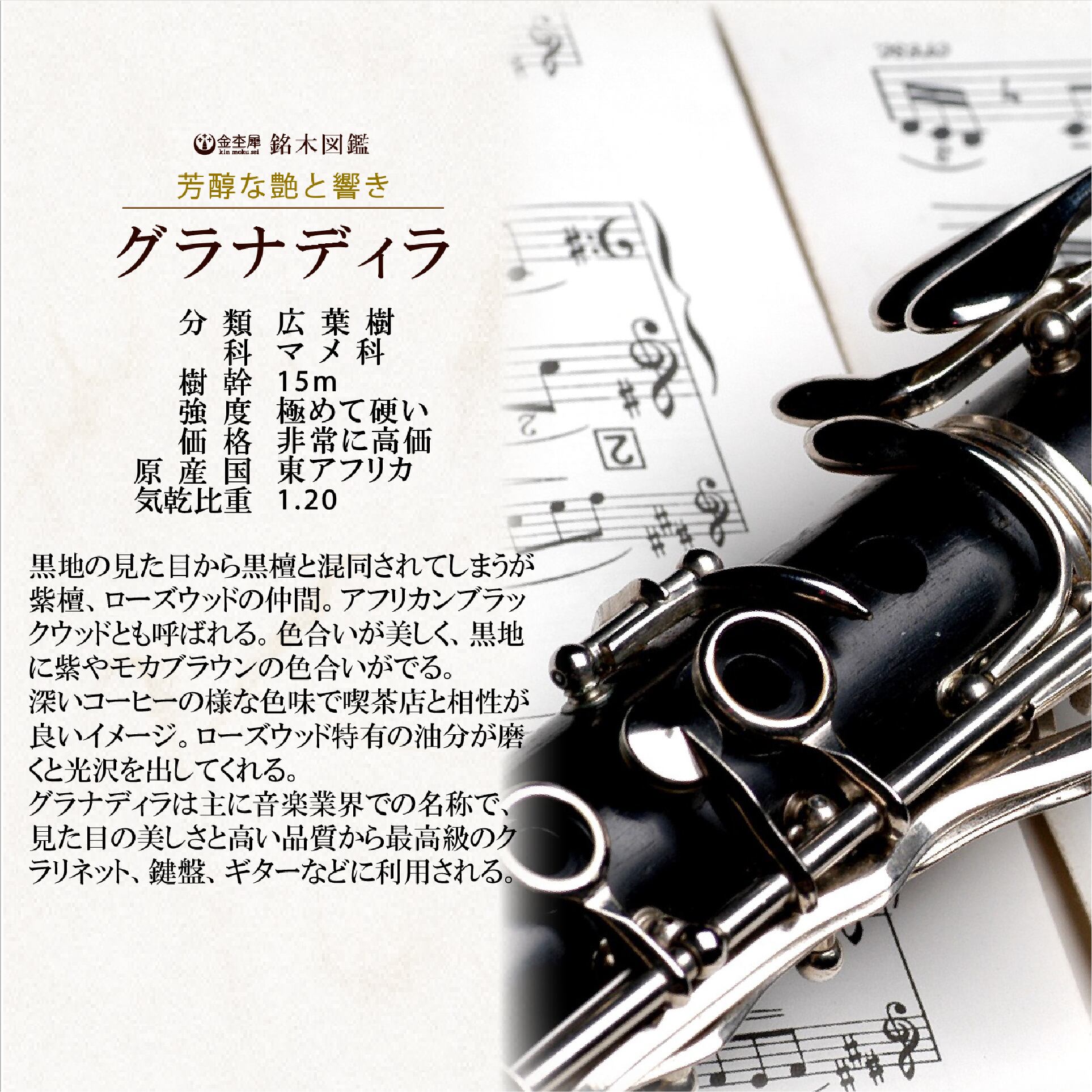 高級楽器にも使われるグラナディラ。