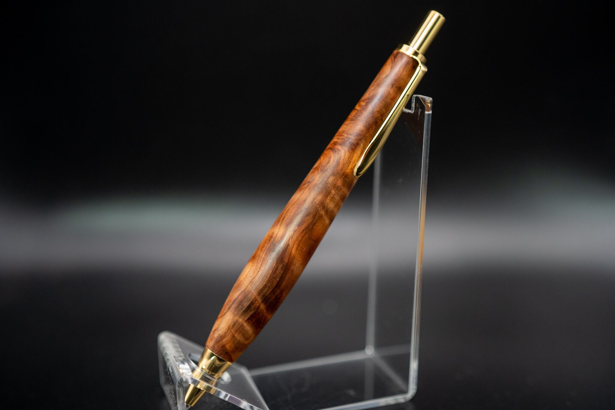 火炎杢と表現される部位もありますが、ペンの大きさでは伝わりにくい為、一律で油杢とさせて頂きます。今回は二本、こちらはカルナバワックスによる経年変化を楽しめる一本。