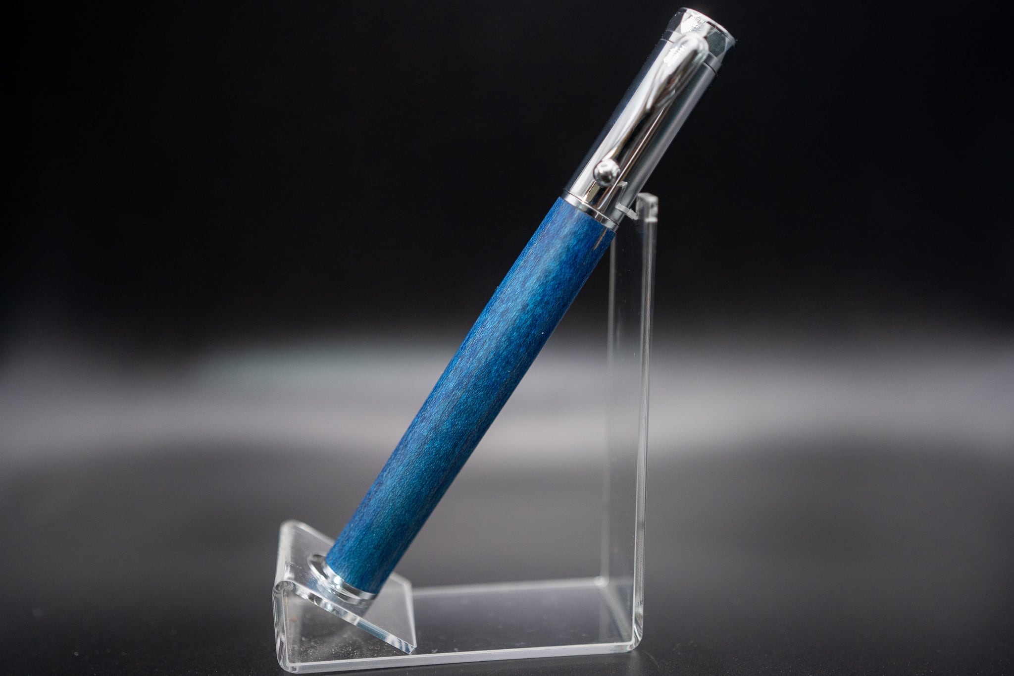 今回はシンプルなメープル材を使用して鮮やかな青の樹脂を流し込んだ作品。