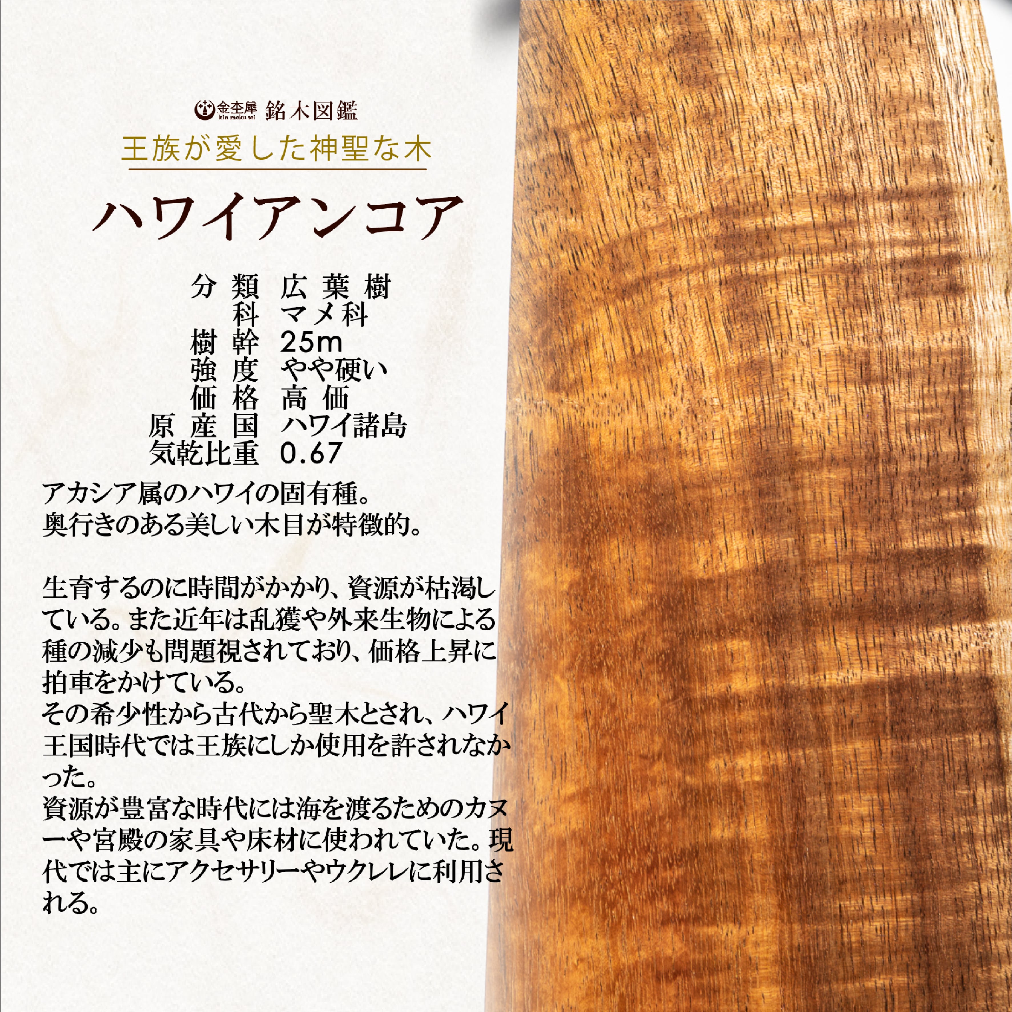 ハワイ原産のコアウッド。希少な縮杢が力強く入った美しい材。