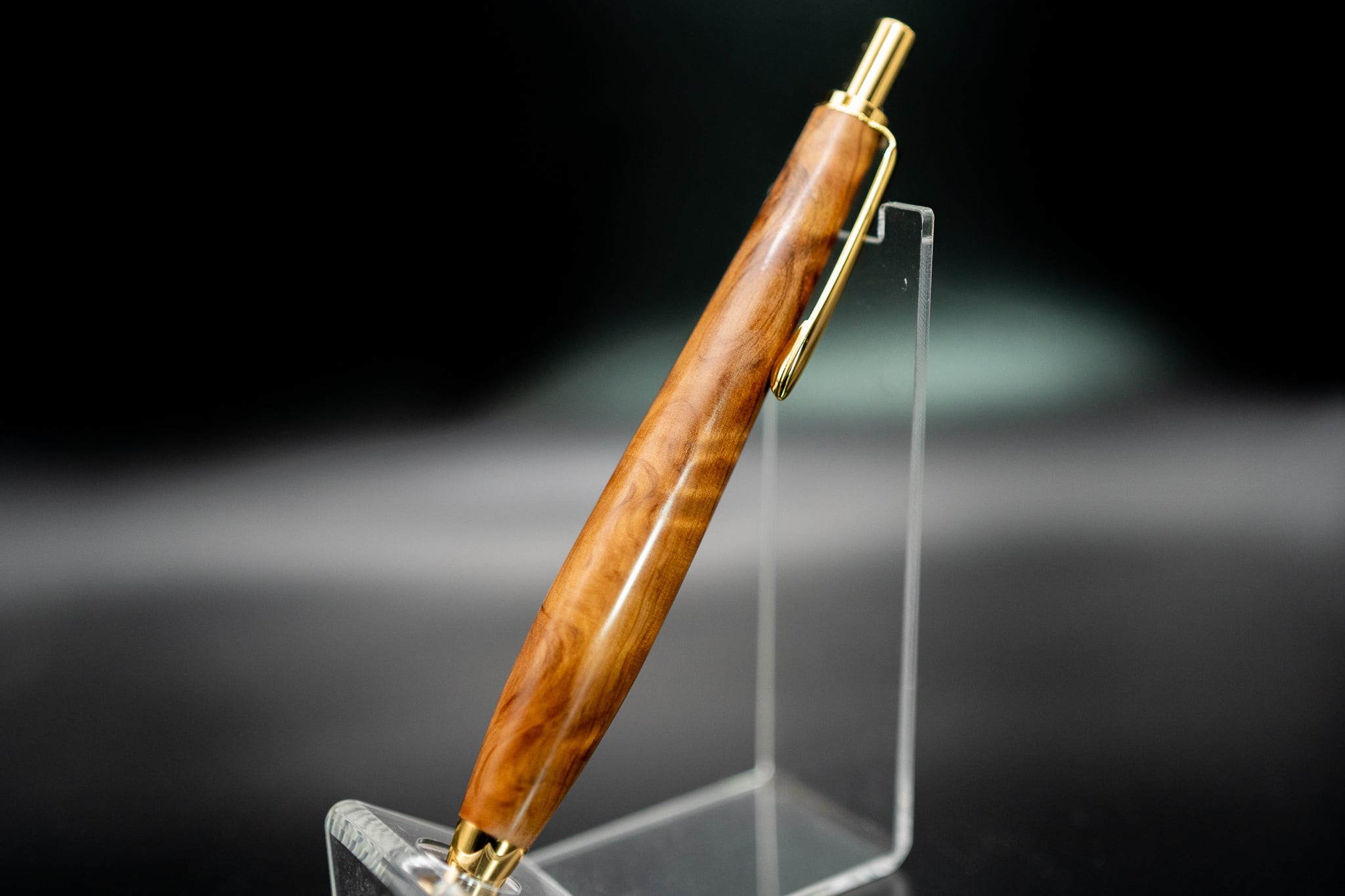 火炎杢と表現される部位もありますが、ペンの大きさでは伝わりにくい為、一律で油杢とさせて頂きます。こちらはシェラックを使用した金杢犀オリジナルポリッシュで輝く杢をお楽しみいただけます。