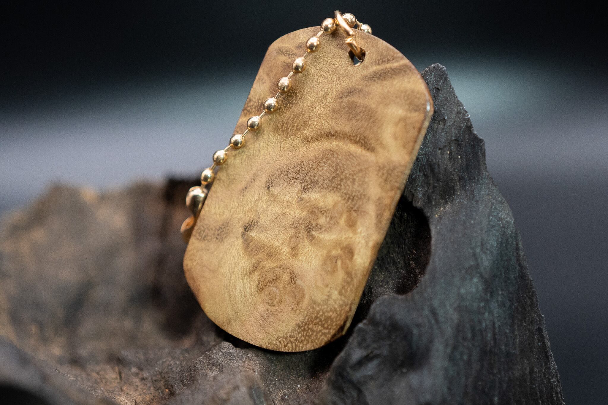 【 緻密な黄金の杢 】 マーブルウッド ドッグタグ 象嵌 トンビと油揚げ