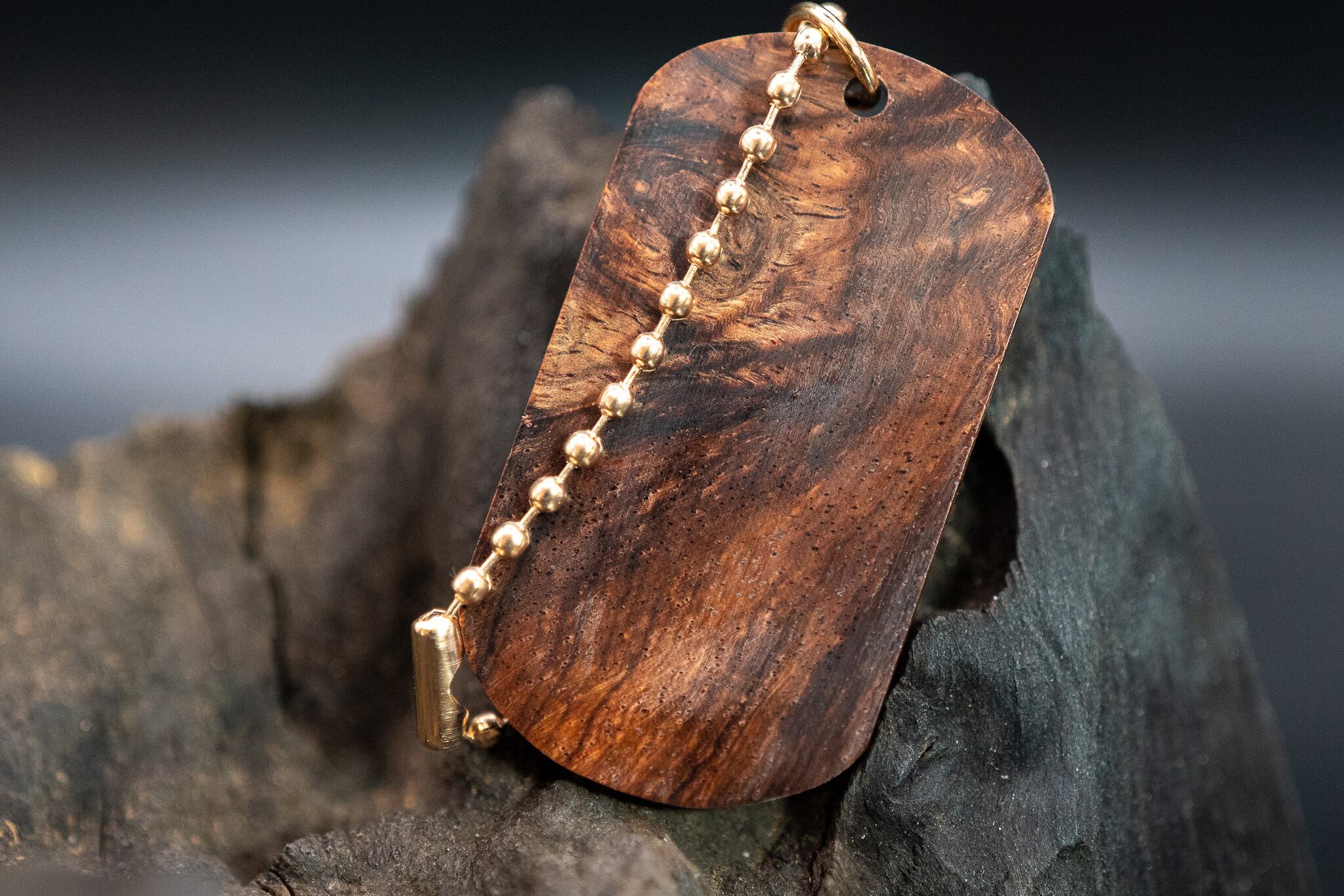 【 エスニックなローズウッド 】ココボロ 糸縮み杢 ドッグタグ 象嵌 三日月とたぬき