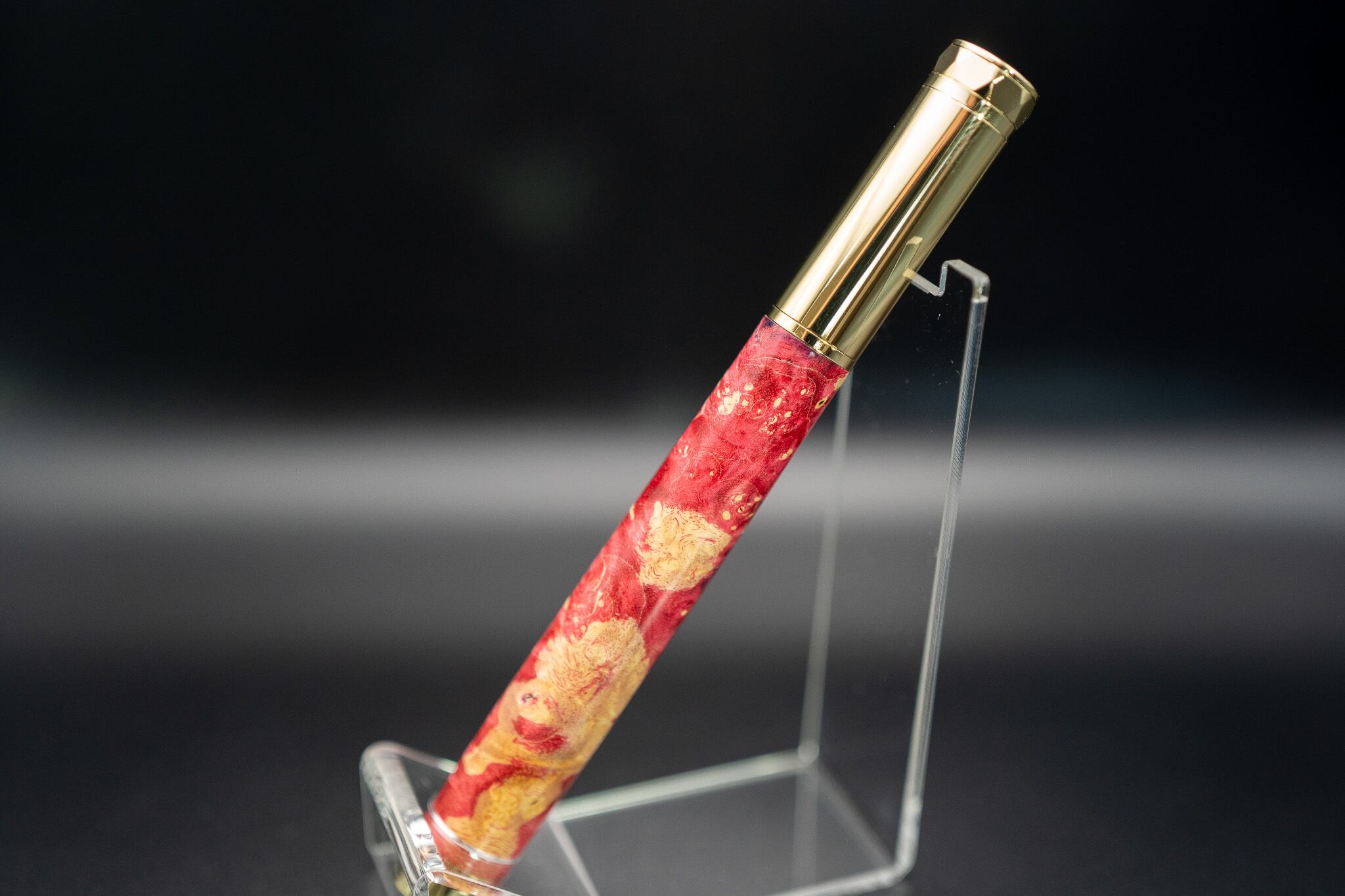 こちらはメープルバールにビビットなピンク色の特殊な樹脂を流しました。要所で密度の詰まった黄色が映える逸品。