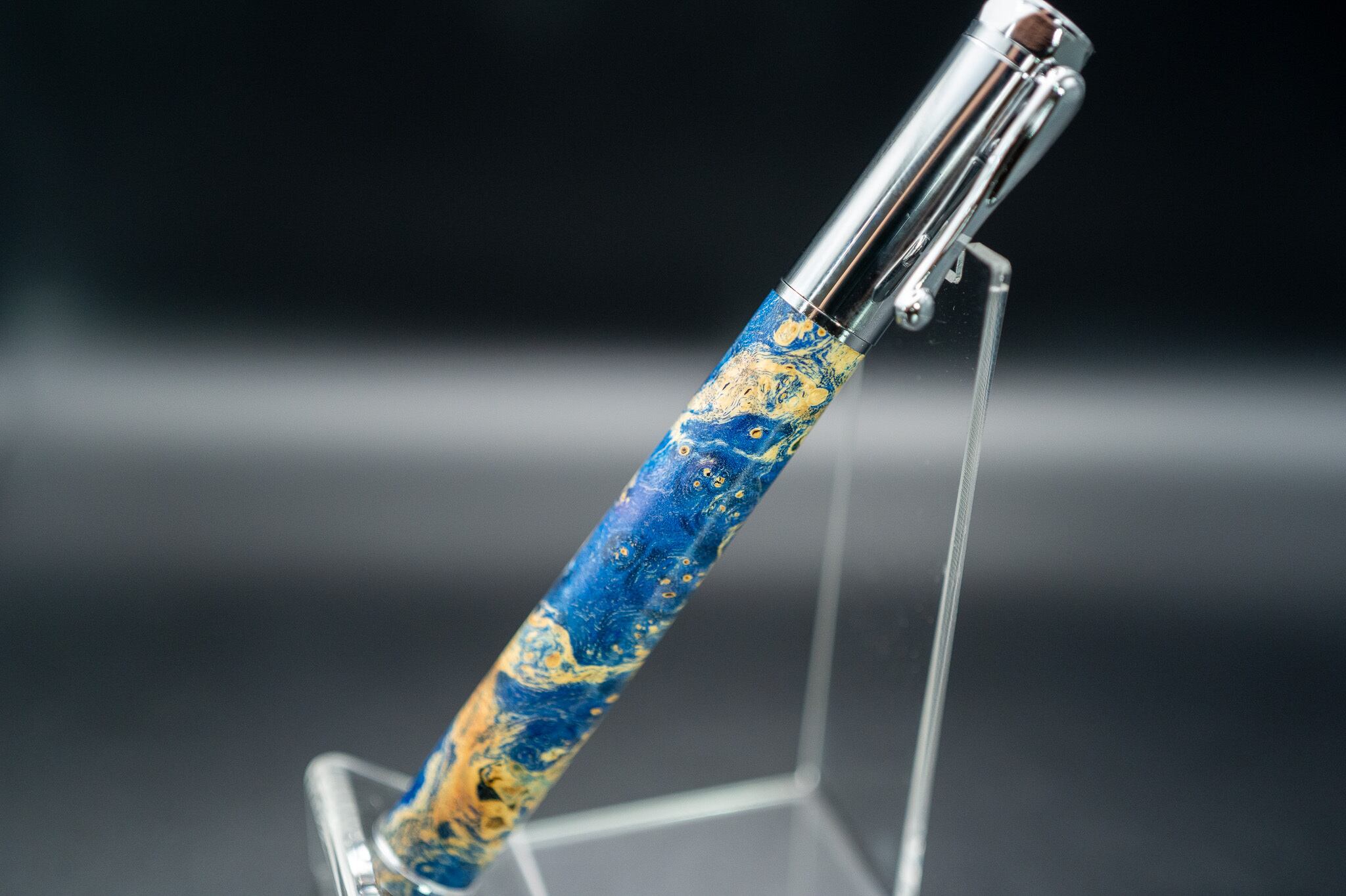 こちらはメープルバールを青の樹脂で染め上げたスタビライズドウッド。青の惑星と呼ばれる地球を俯瞰して切り取った様な、力強い印象の一本。
