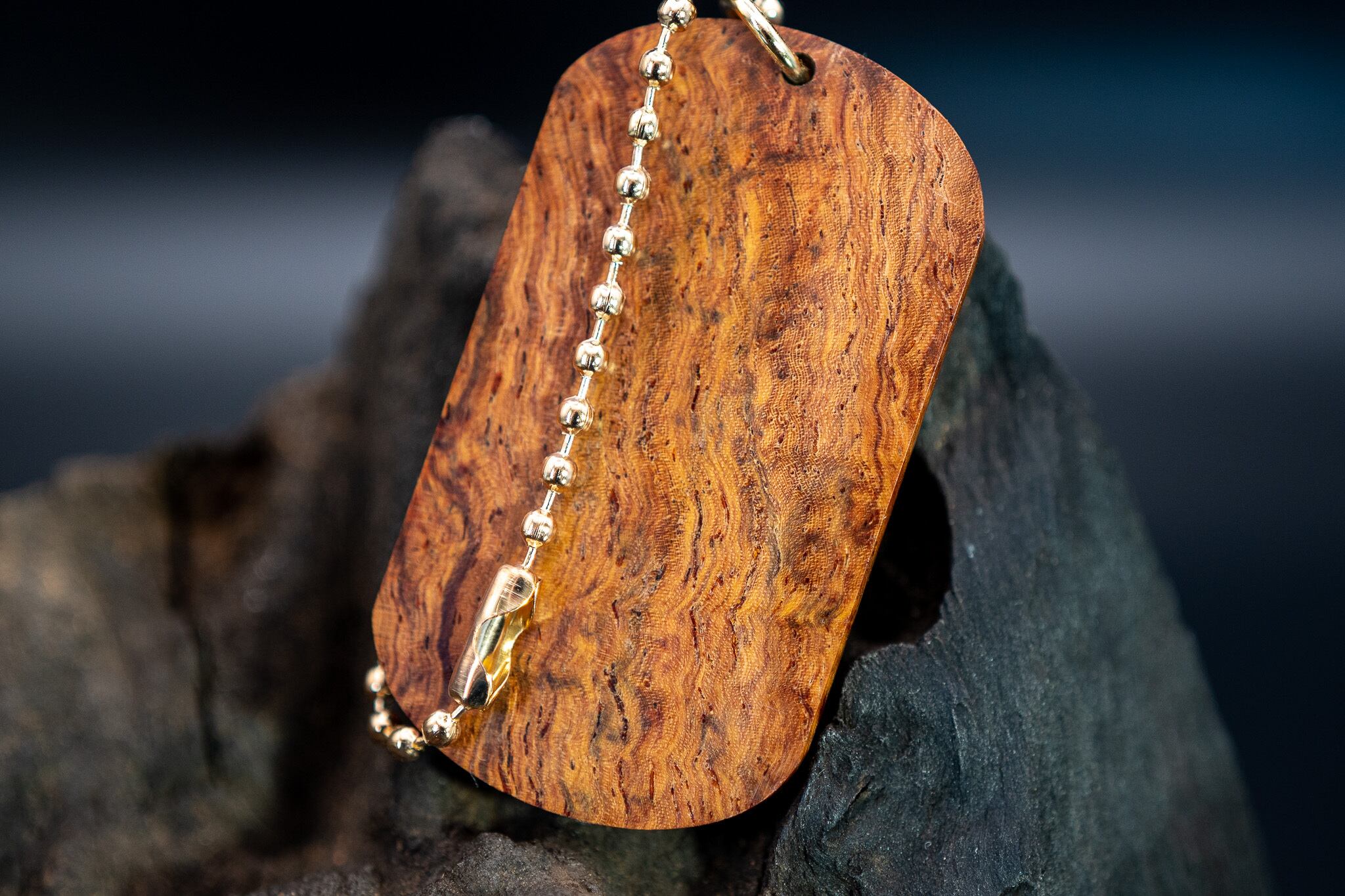 【最高峰の鳥眼杢】バーズアイローズウッド ドッグタグ 象嵌 月と狼