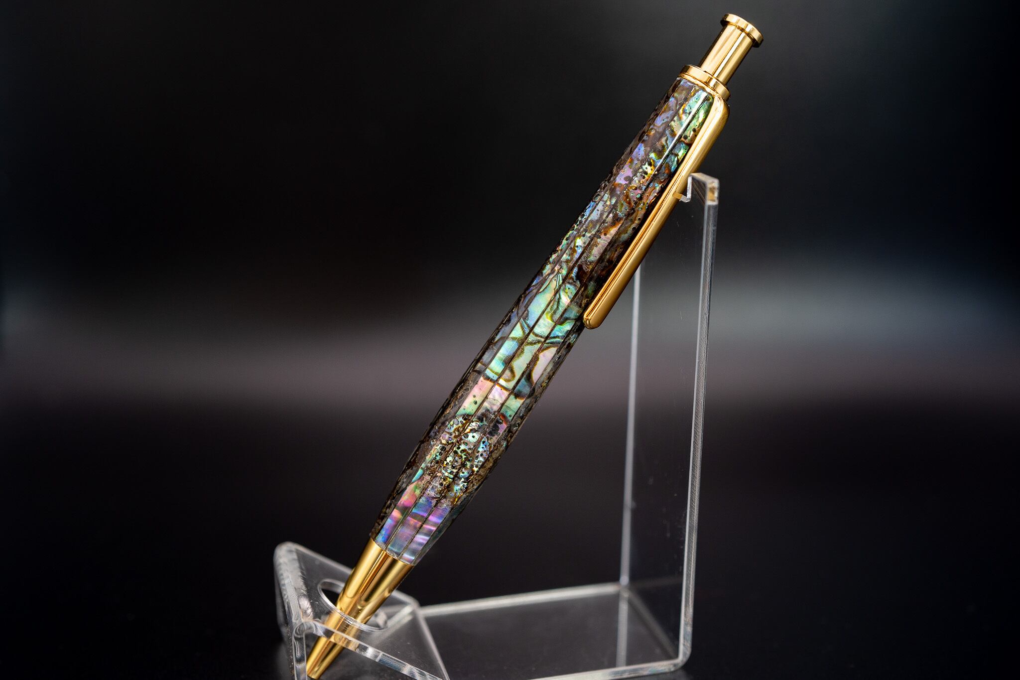 こちらはメキシコ原産のアバロンを2㎜幅にカットし、樹脂で閉じ込めました。