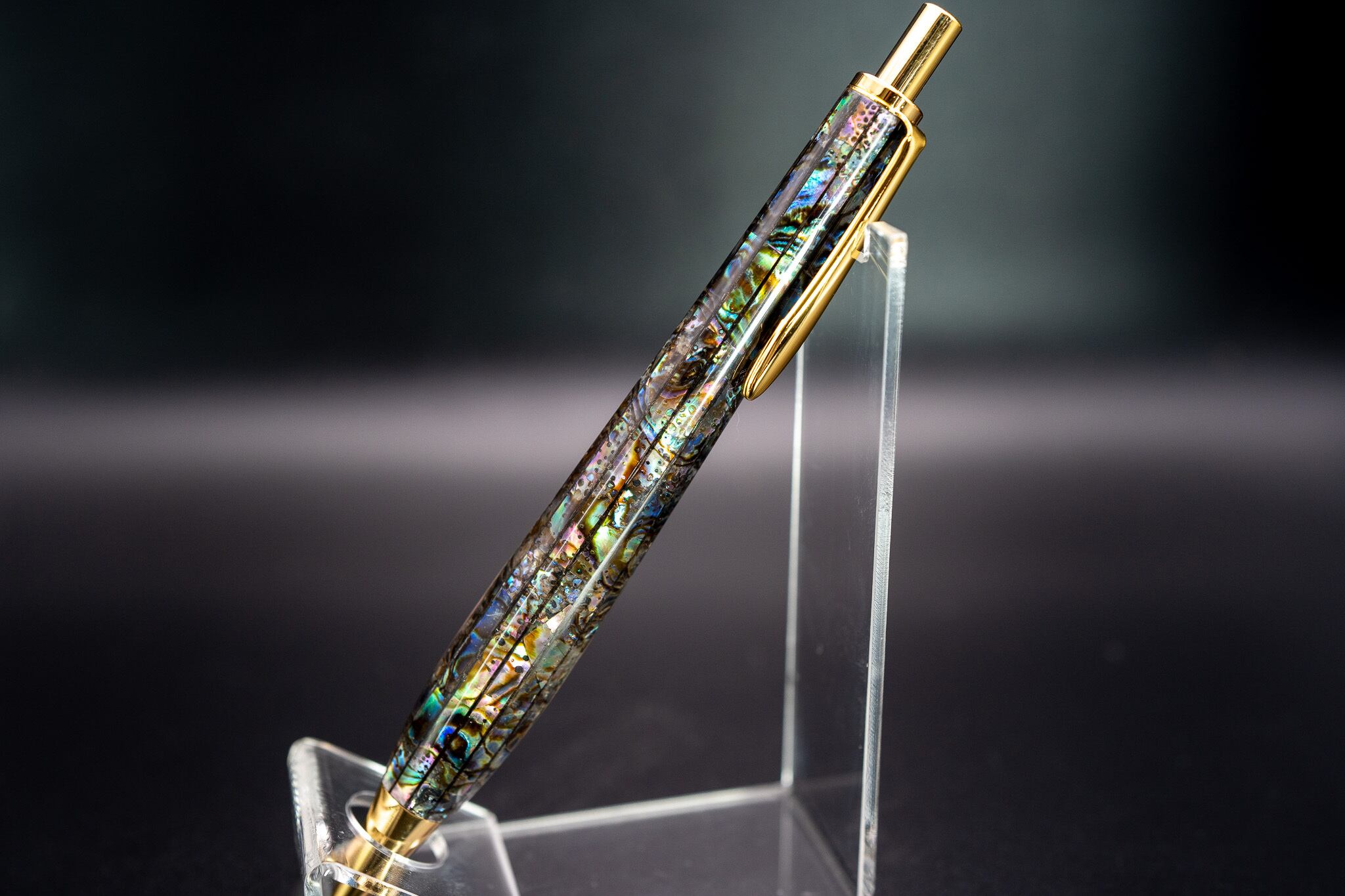 こちらはメキシコ原産のアバロンを2㎜幅にカットし、樹脂で閉じ込めました。