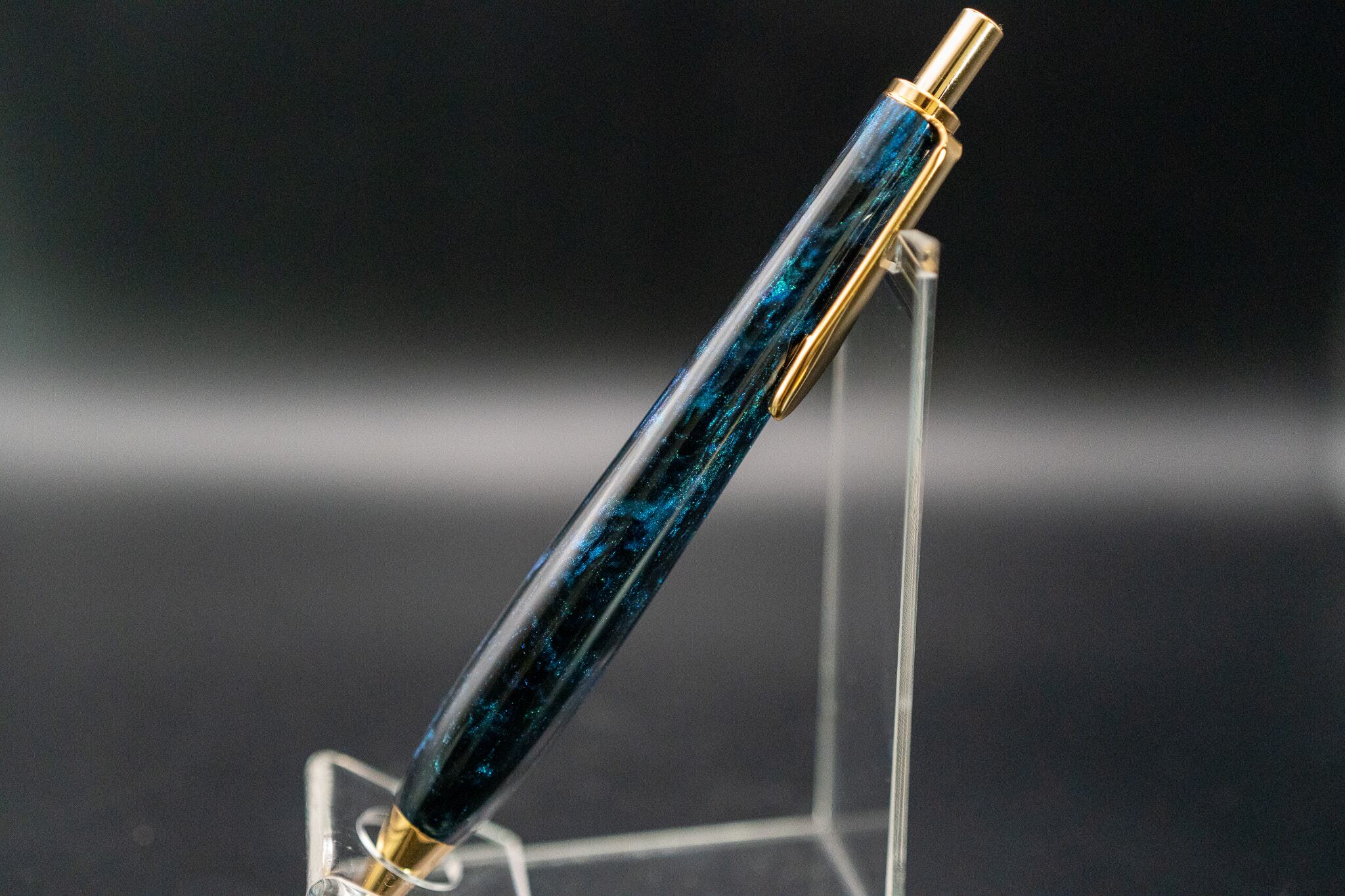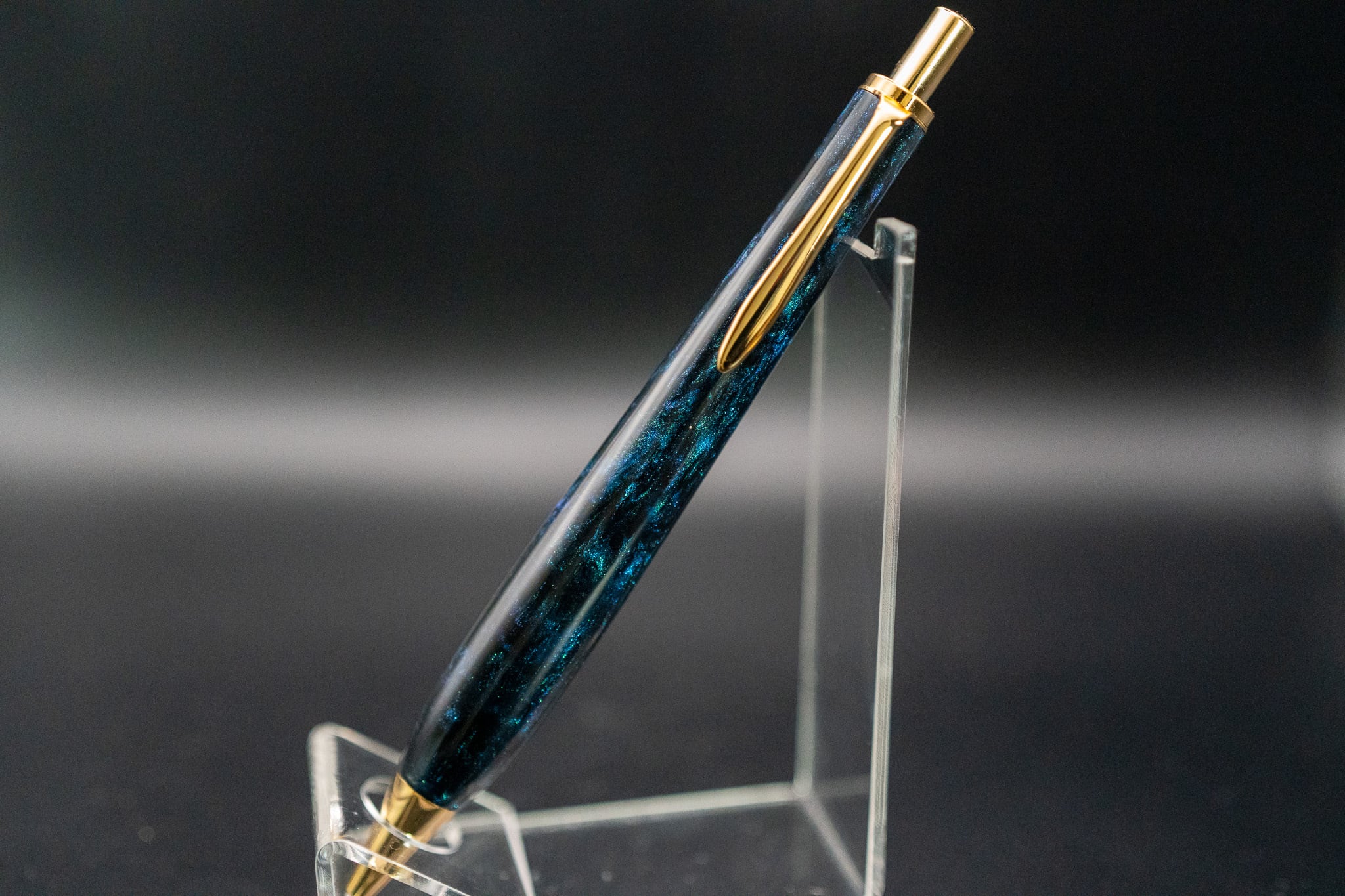 黒をベースにブルーとグリーンが奥深く輝く華やかな一本。