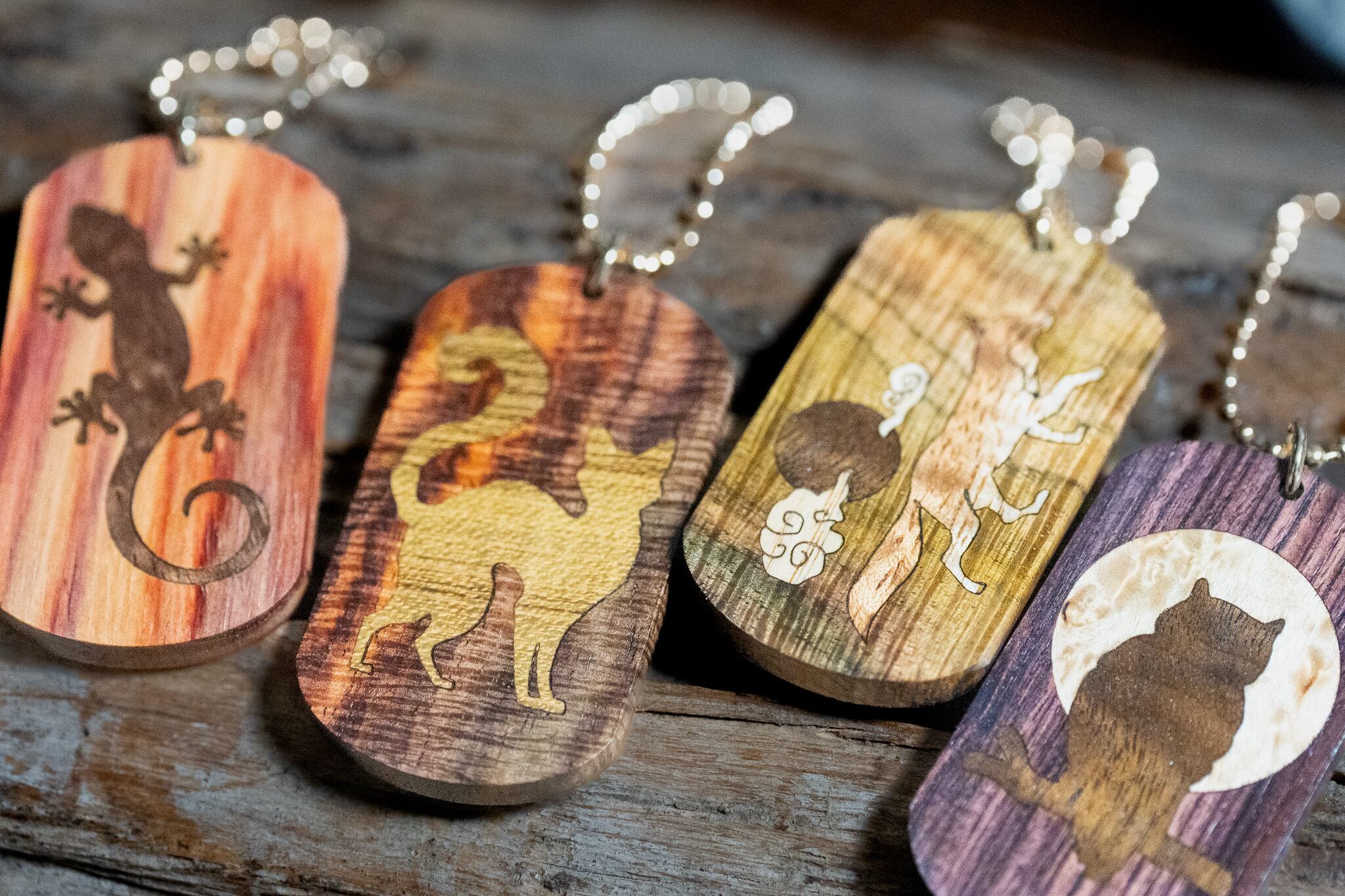 【21世紀最高峰の材】サイアミーズローズウッド マイクロカーリー ドッグタグ 象嵌 探る視線