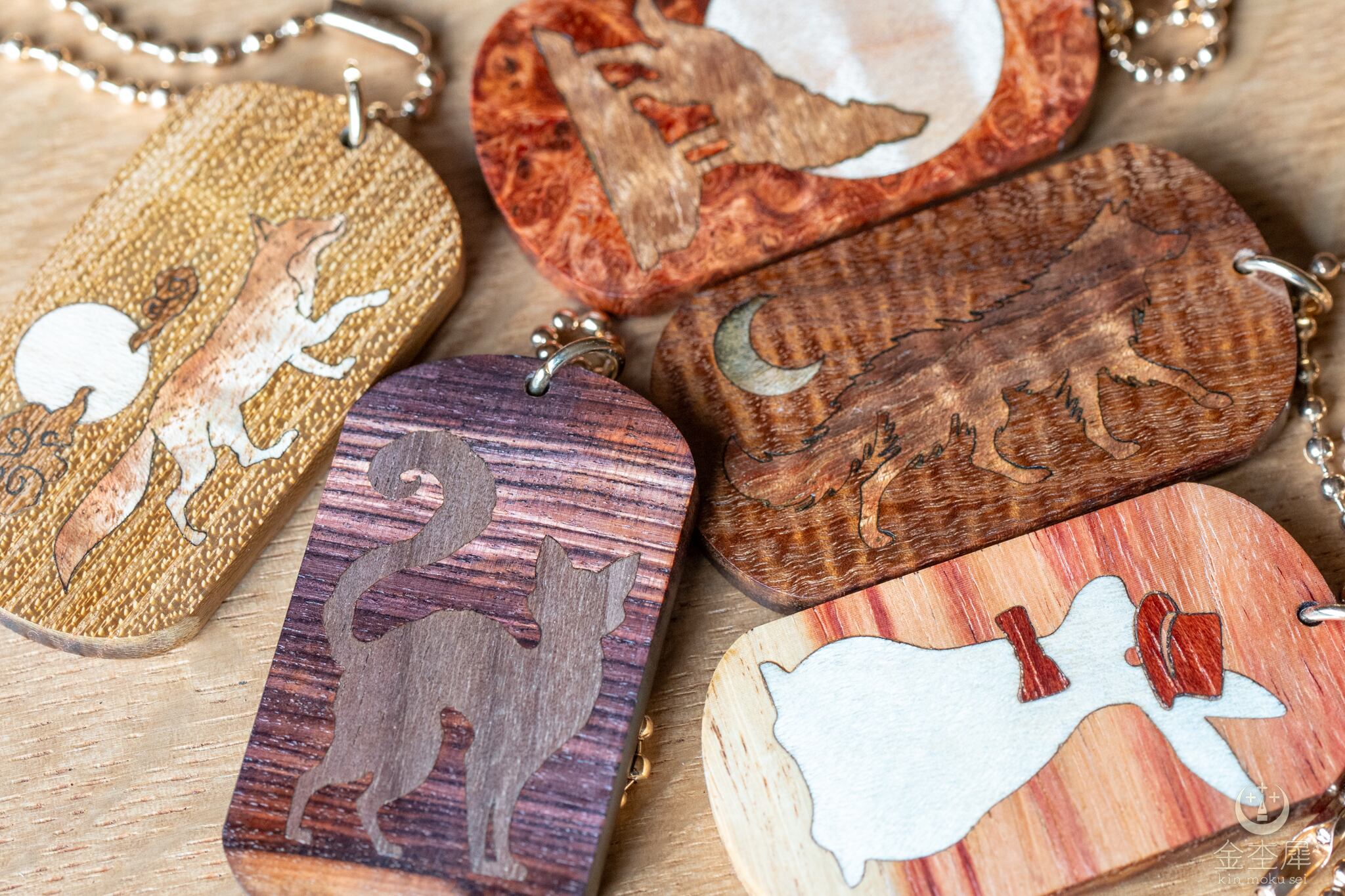 月はキルテッドメープル、狼はアカシアの縮み杢で仕立てました。