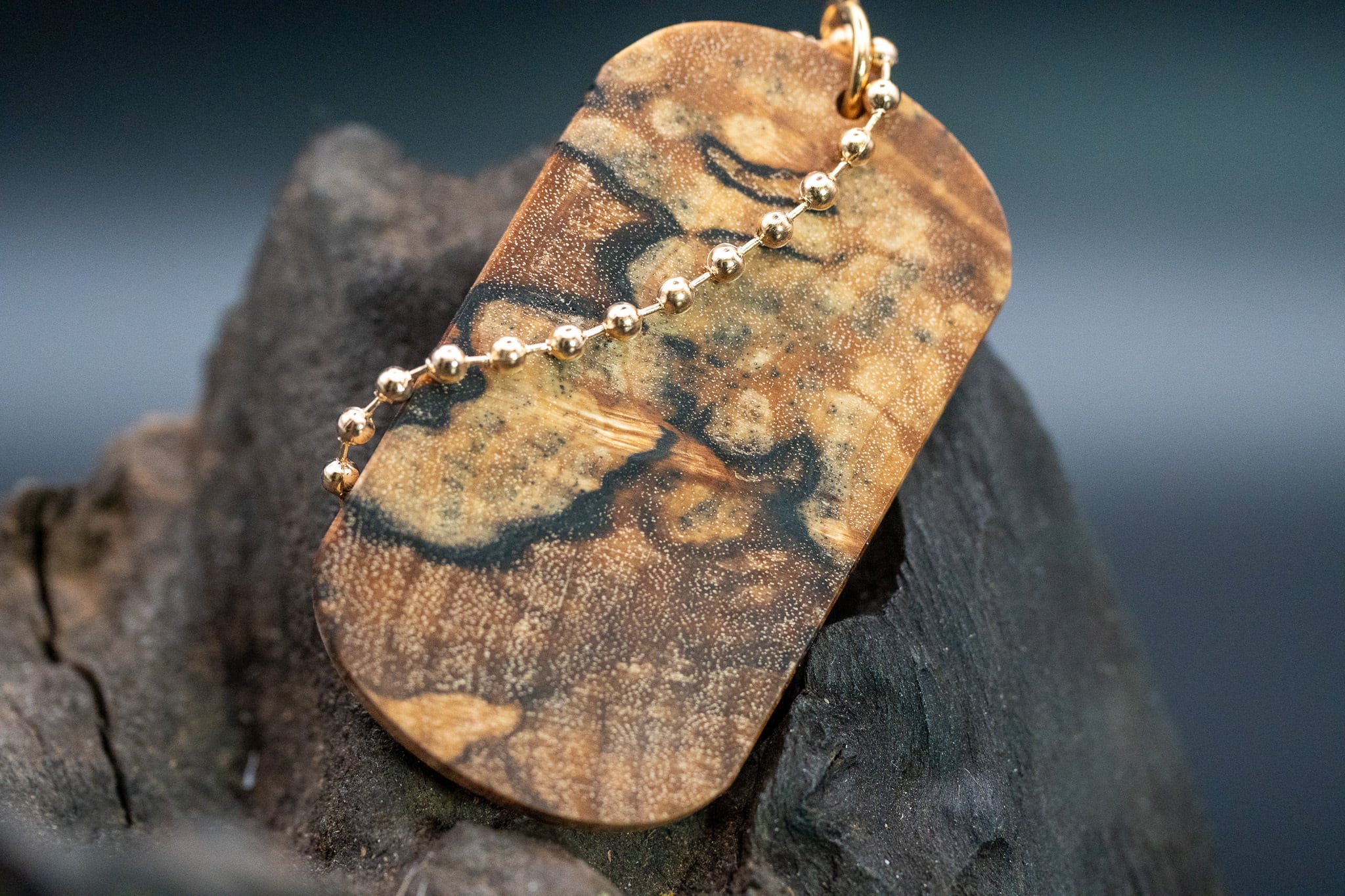 【 北欧の銘木 】スポルテッドマスールバーチドッグタグ 象嵌 月と狼